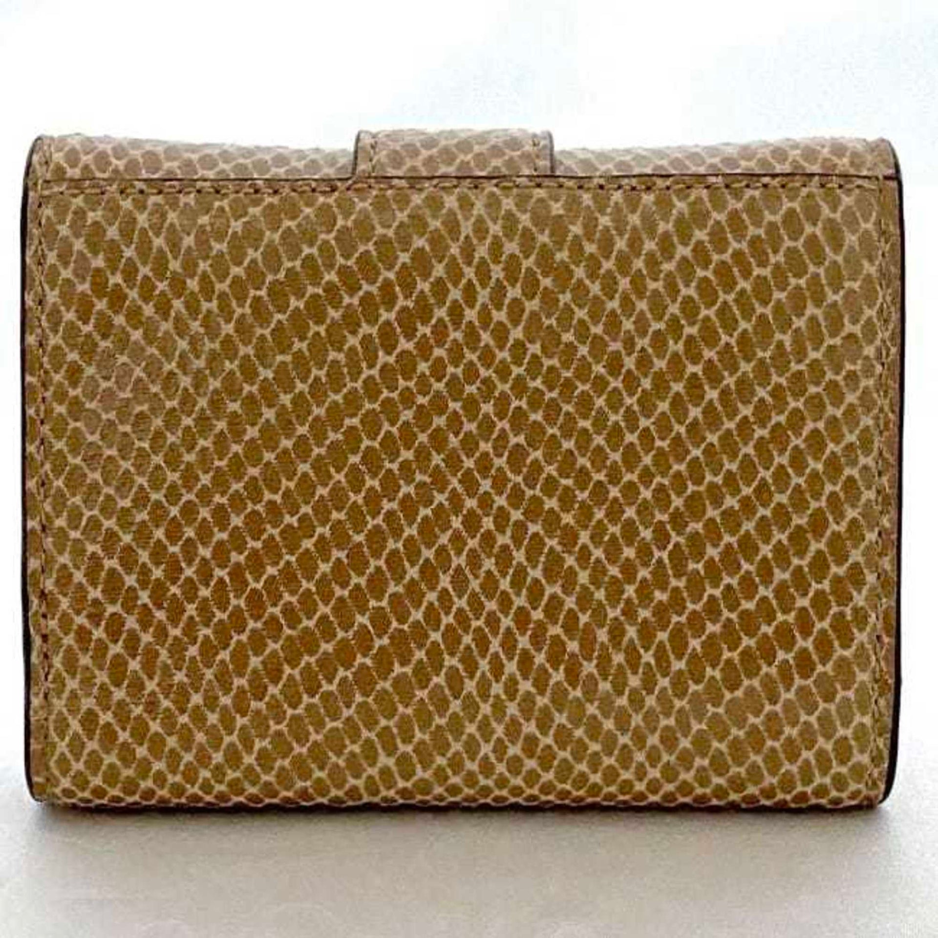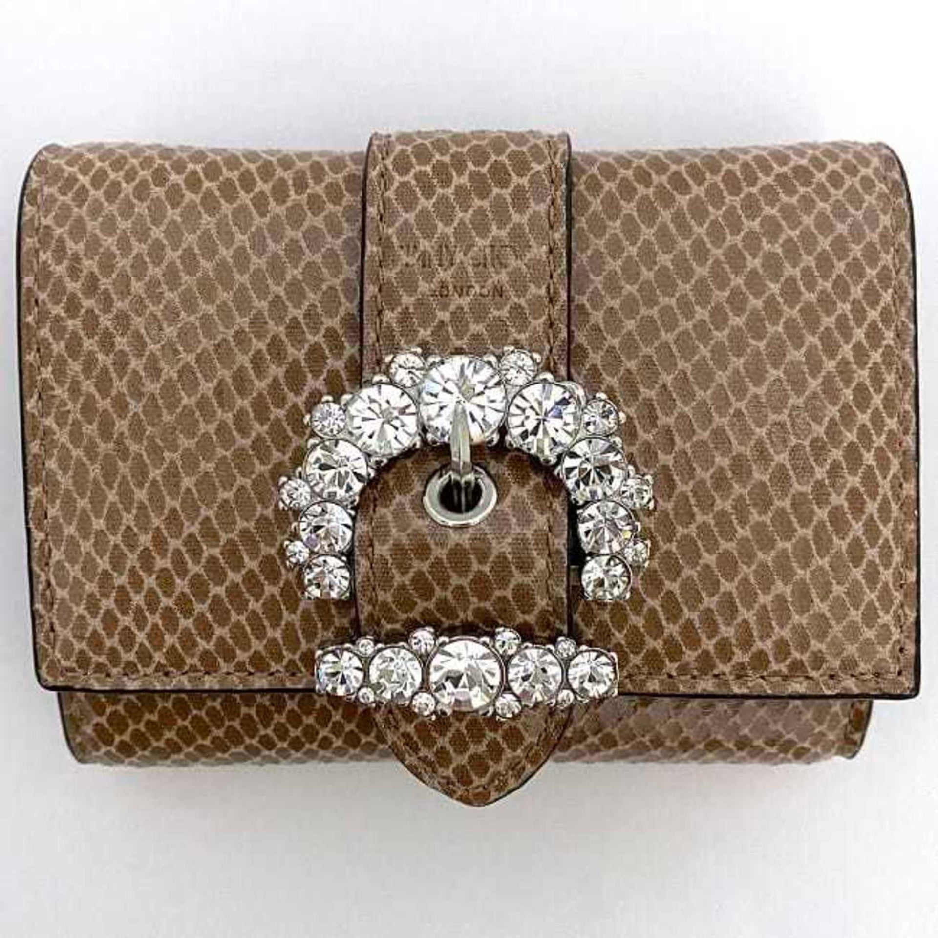 Jimmy Choo Trifold Wallet Beige Pink OLPF 028 Billfold Leather JIMMY CHOO Compact Stone Belt Ladies