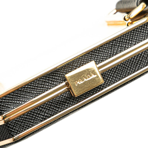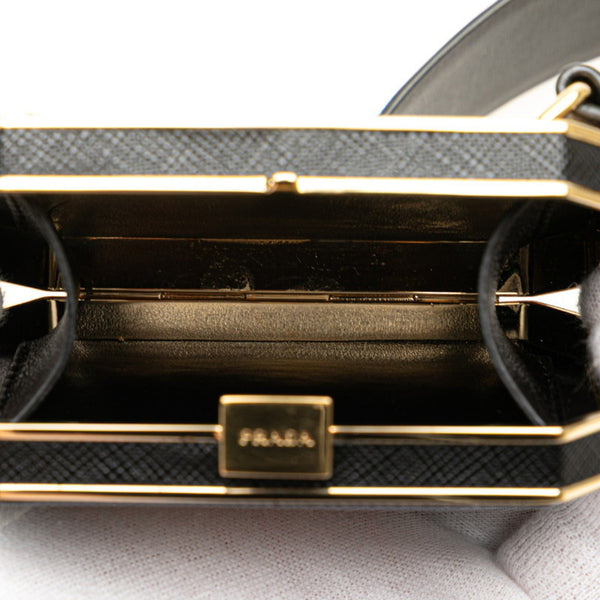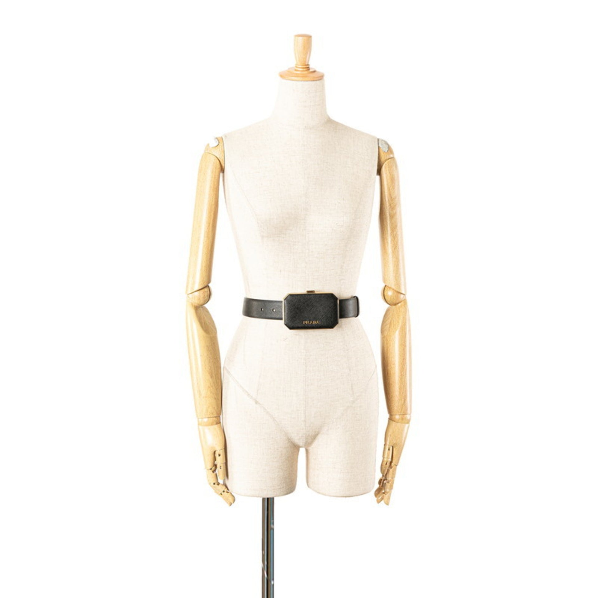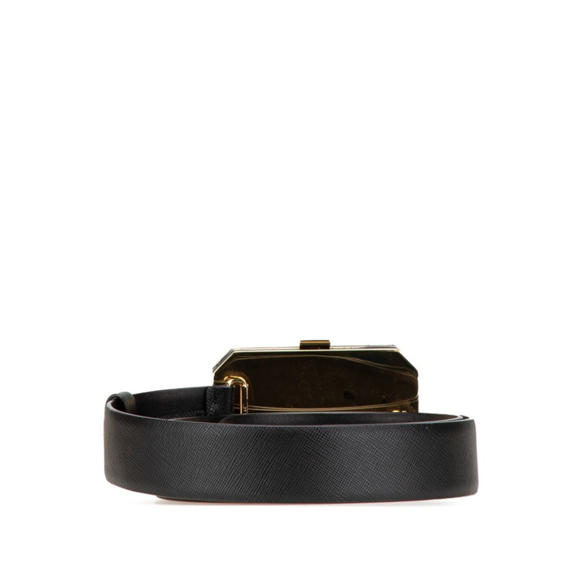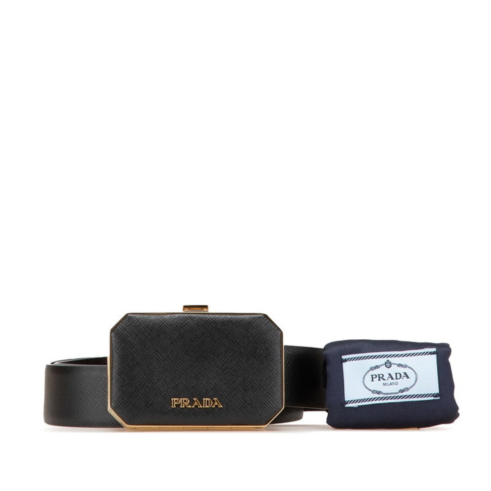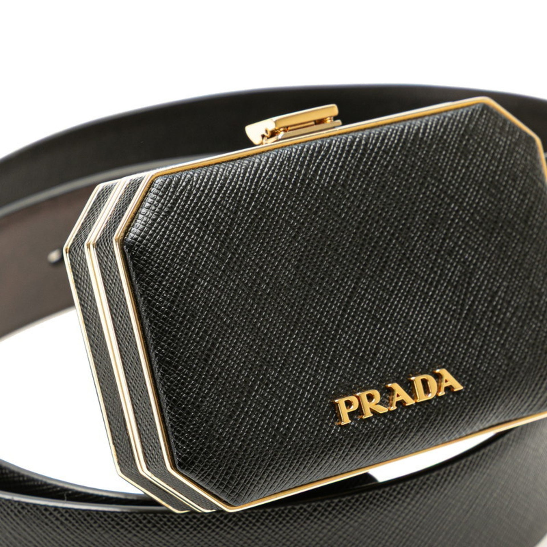 Prada Belt with Vanity Case 1CC491 Black and Gold Saffiano Leather Women\'s PRADA