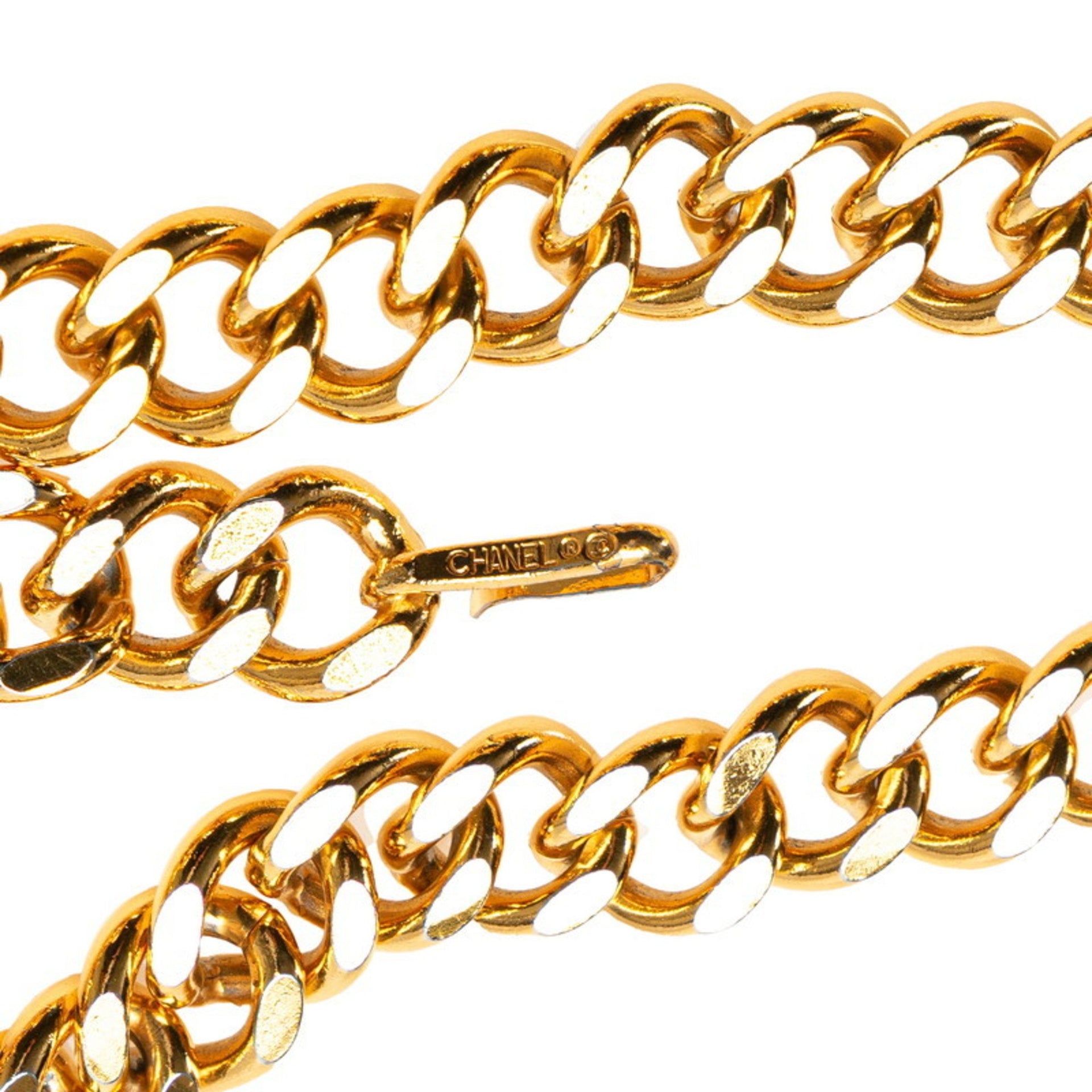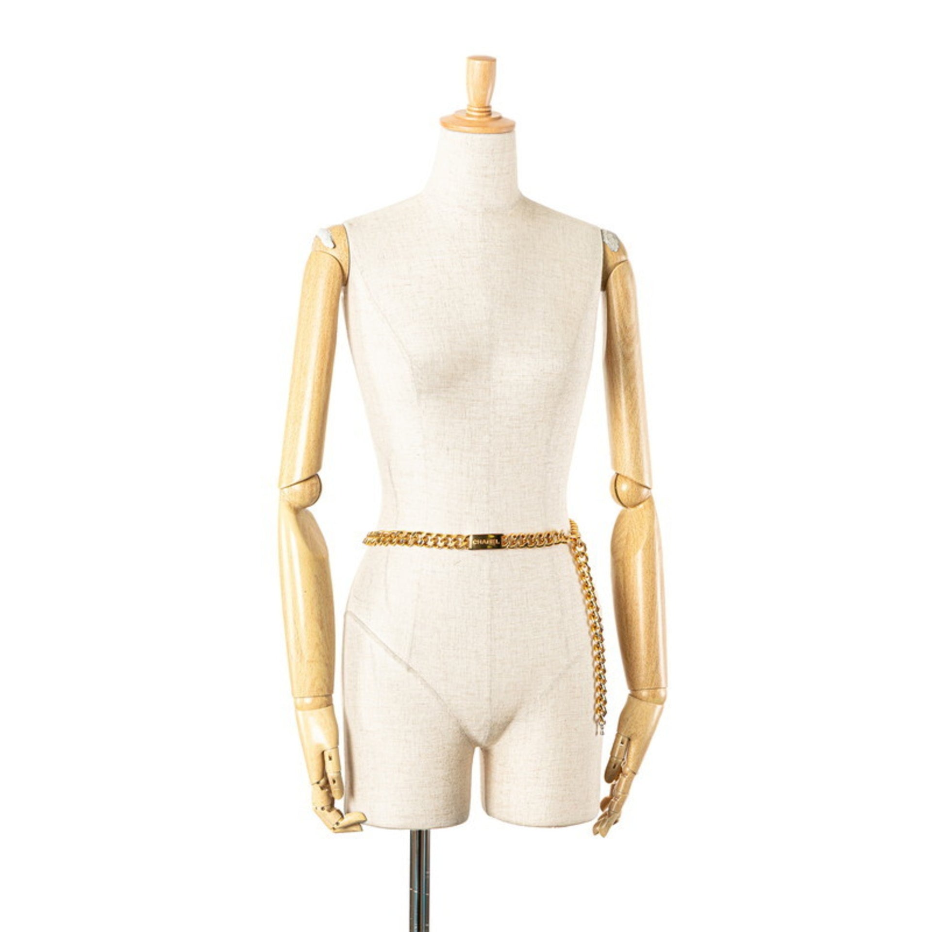 Vintage Chanel logo plate chain belt, gold plated, women\'s.