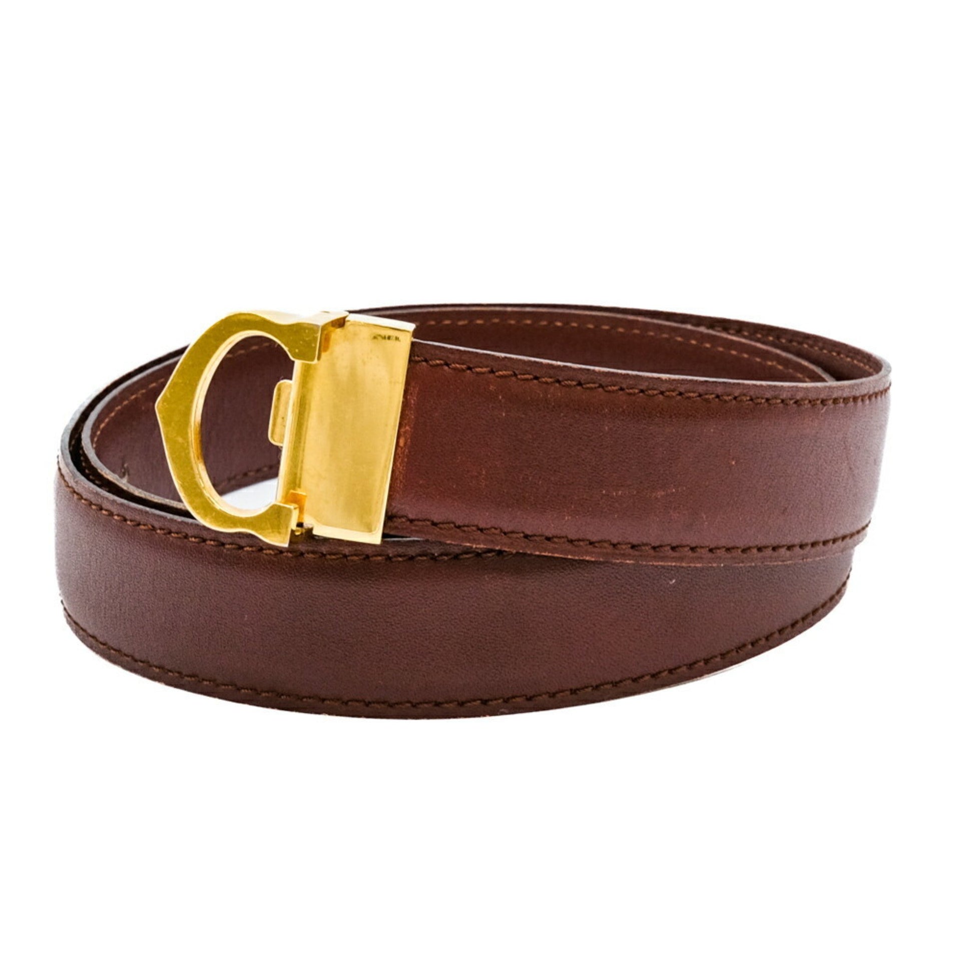 Cartier C Buckle Must Line Belt Leather Bordeaux Wine Red #82