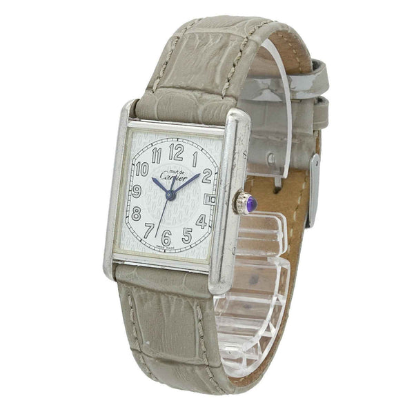 Cartier Must Tank LM Boys\' Watch with Date Display, White Dial, SV925 Quartz Movement