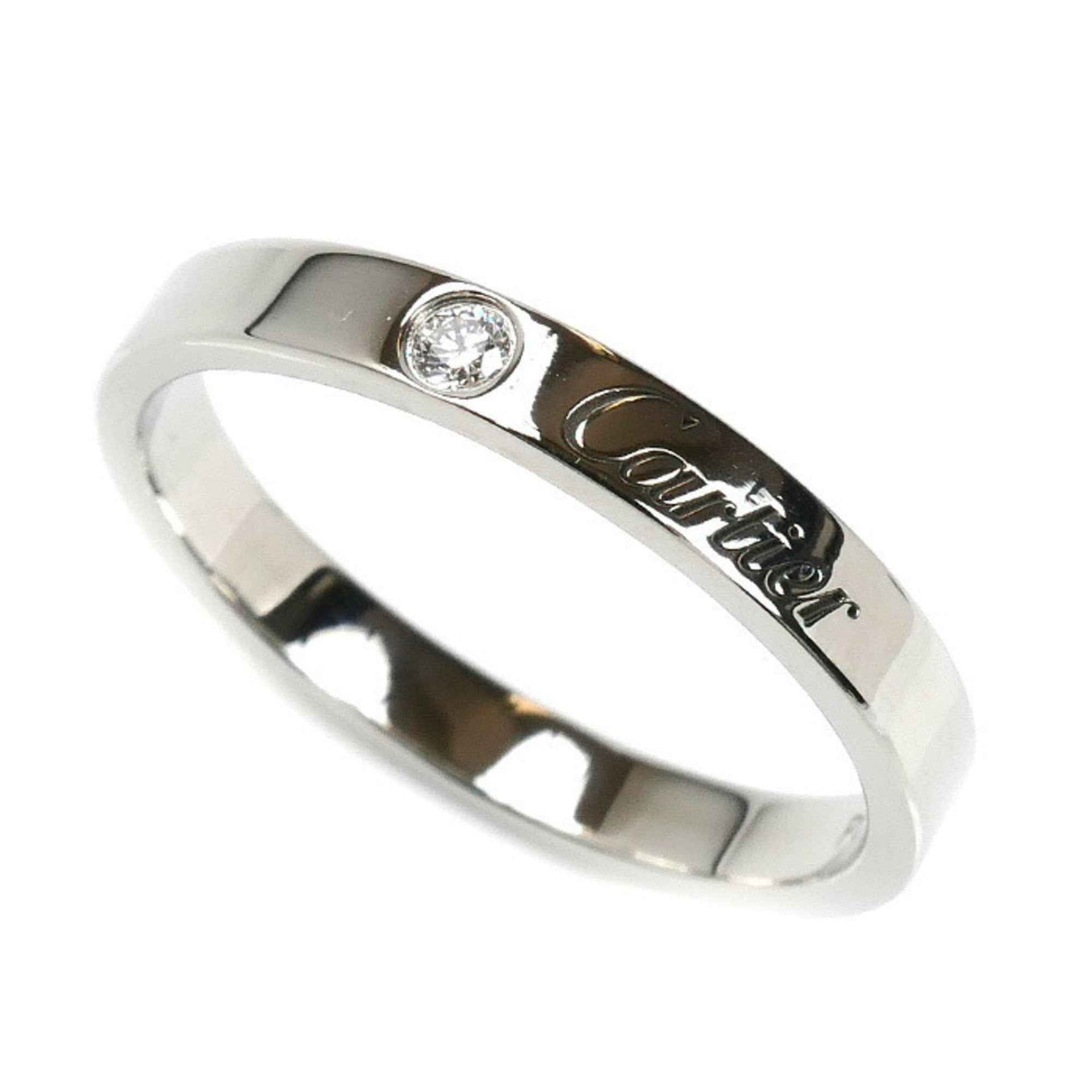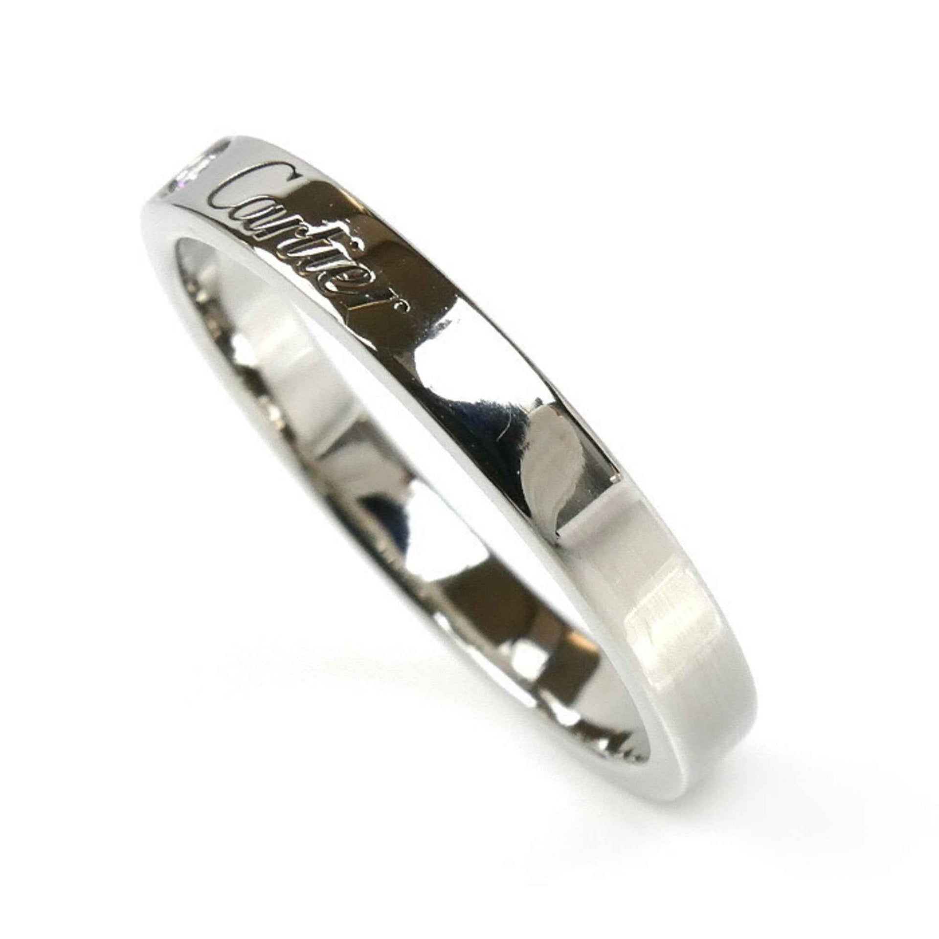 CARTIER Pt950 Platinum Wedding Ring with a Single Diamond, Engraved, B4051359, Size 18.5, 59mm, 5.4g, Women\'s