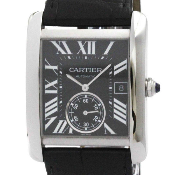 CARTIER Tank MC Steel Leather Automatic Mens Watch W5330004 Polished