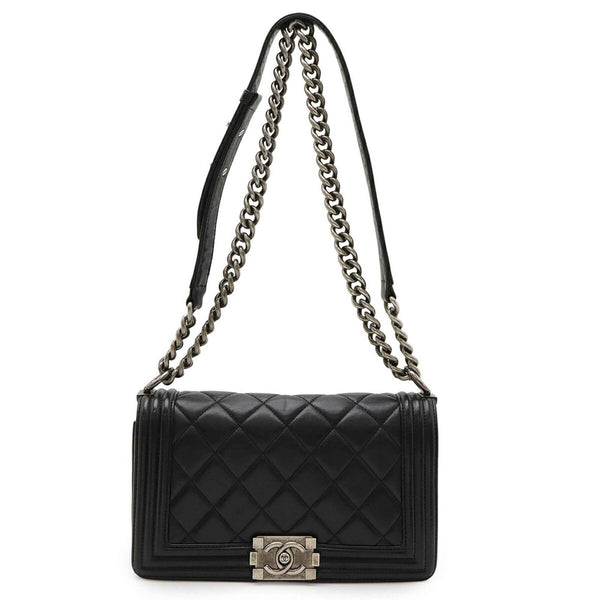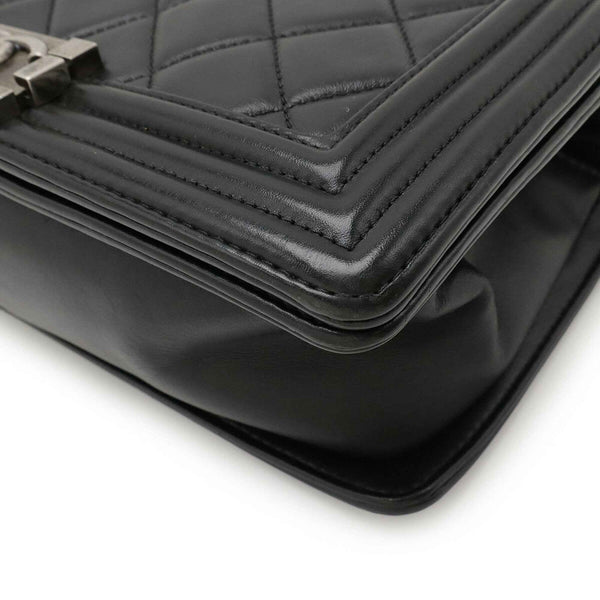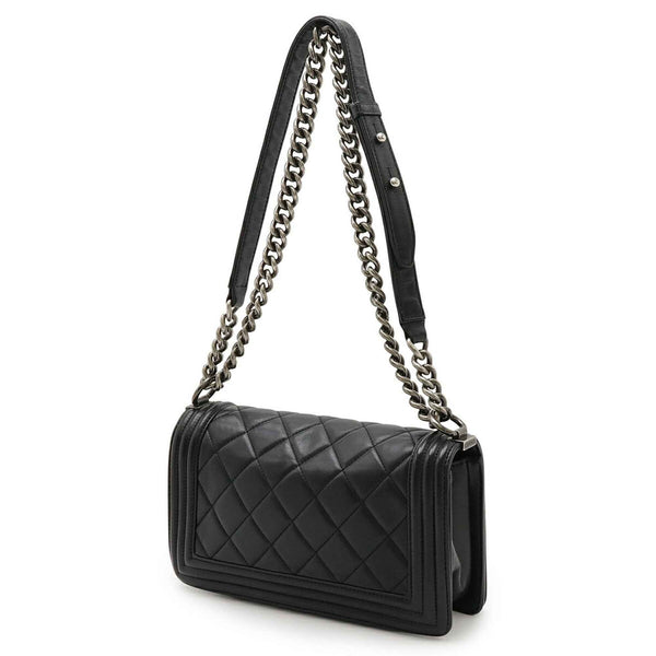 CHANEL Boy Chanel 25 Wild Stitch Matelasse Coco Mark Chain Shoulder Bag in Black Leather (A67086)