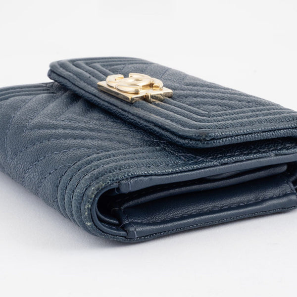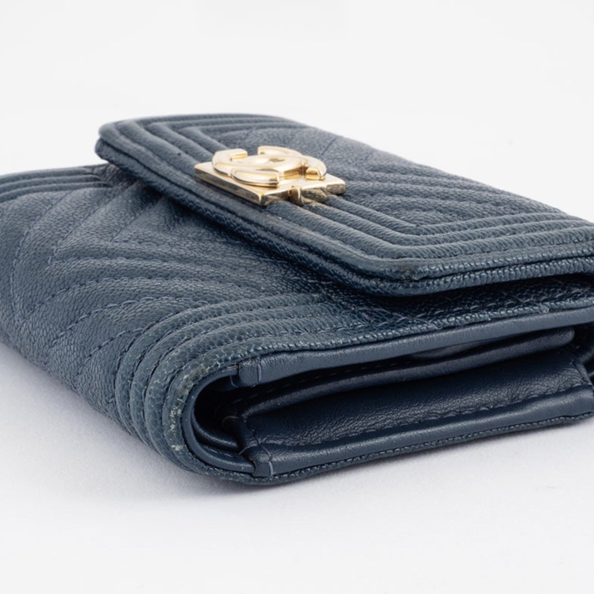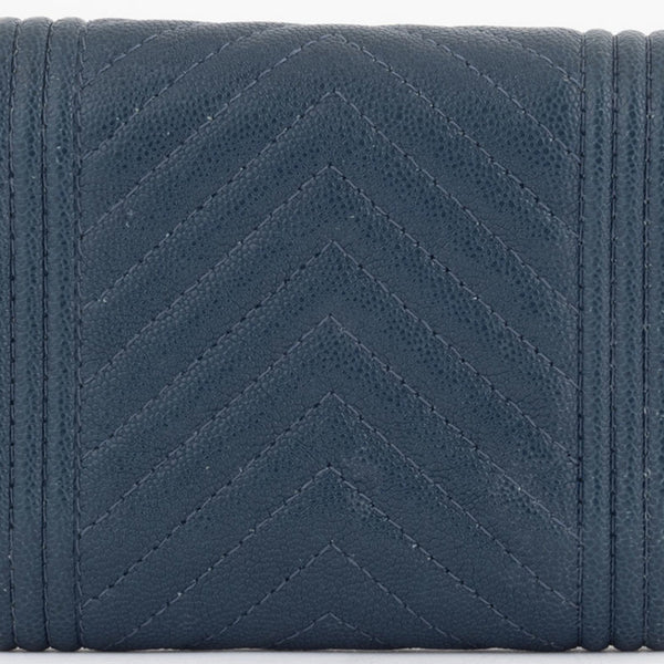 Chanel Boy Chevron Compact Tri-fold Wallet Caviar Skin Blue Green Women\'s 28th Series CHANEL