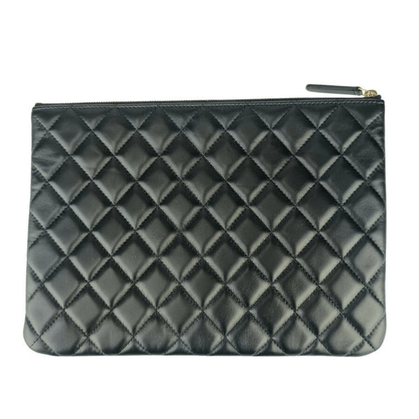 CHANEL Camellia Pouch 82699, Black/Navy Lambskin Velour with Coco Mark and Quilted Matelasse Design