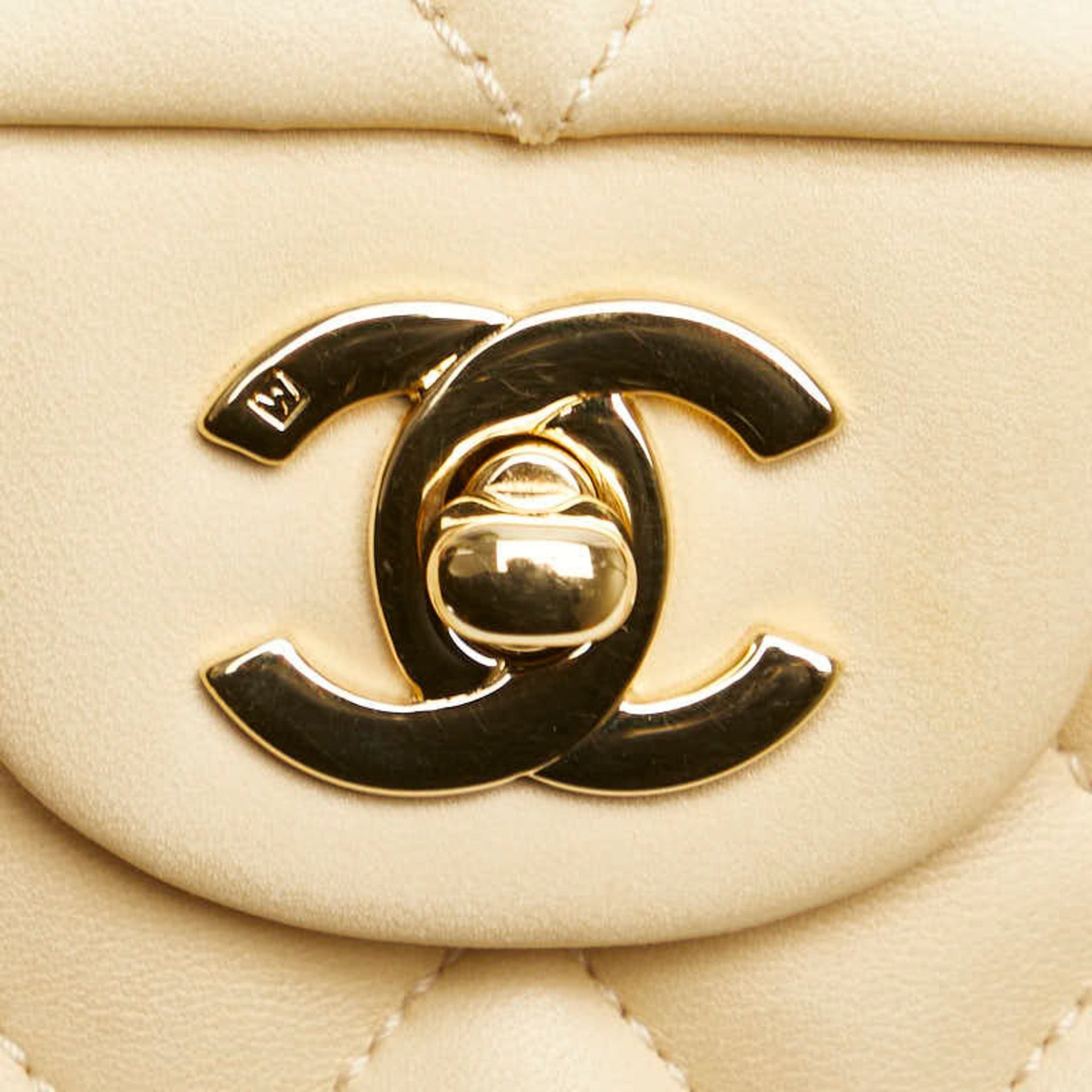CHANEL Coco Mark Matelasse 25 Double Flap Chain Shoulder Bag in Beige Lambskin for Women
