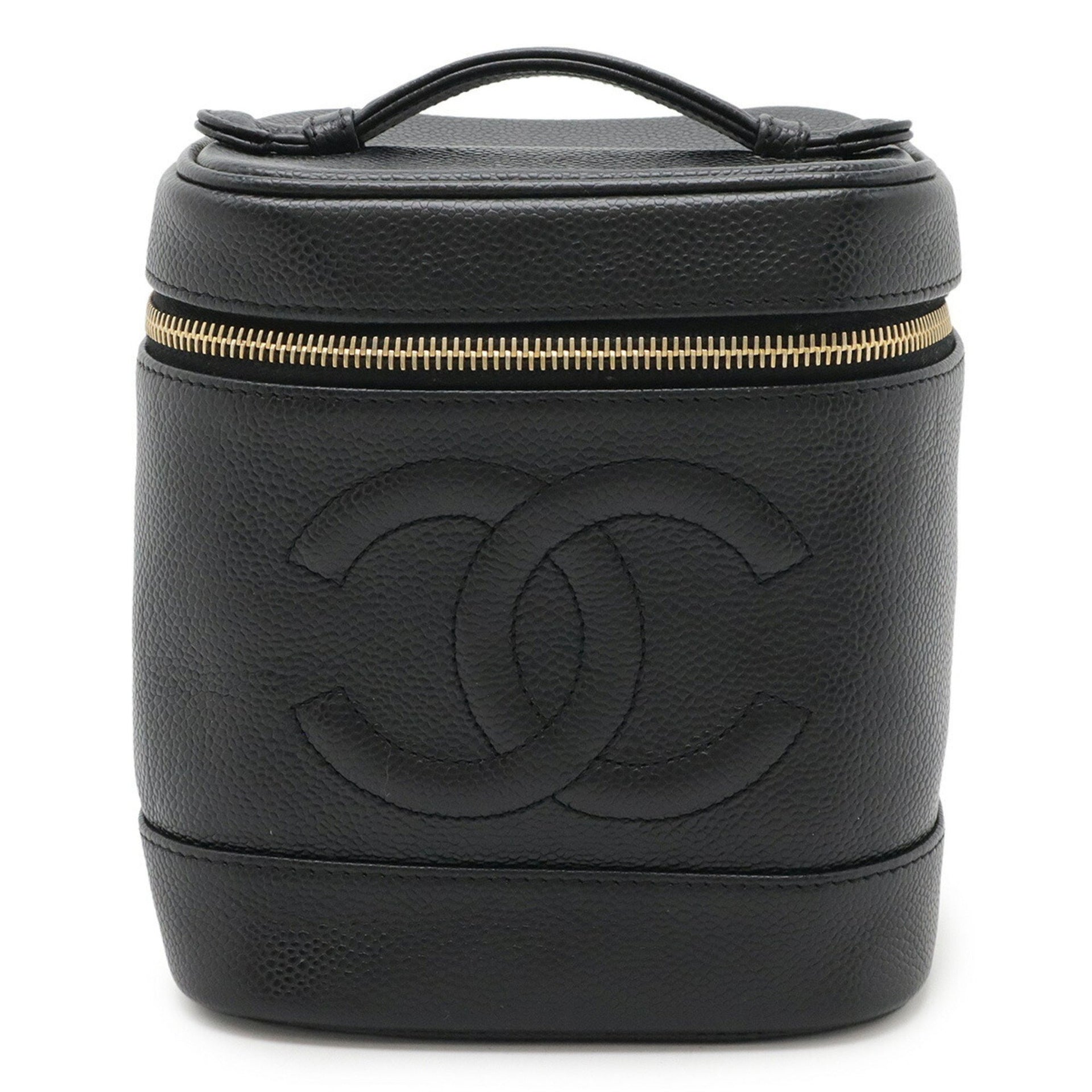 CHANEL Coco Mark Vanity Bag, Handbag, Pouch, Caviar Leather, Black, A01998