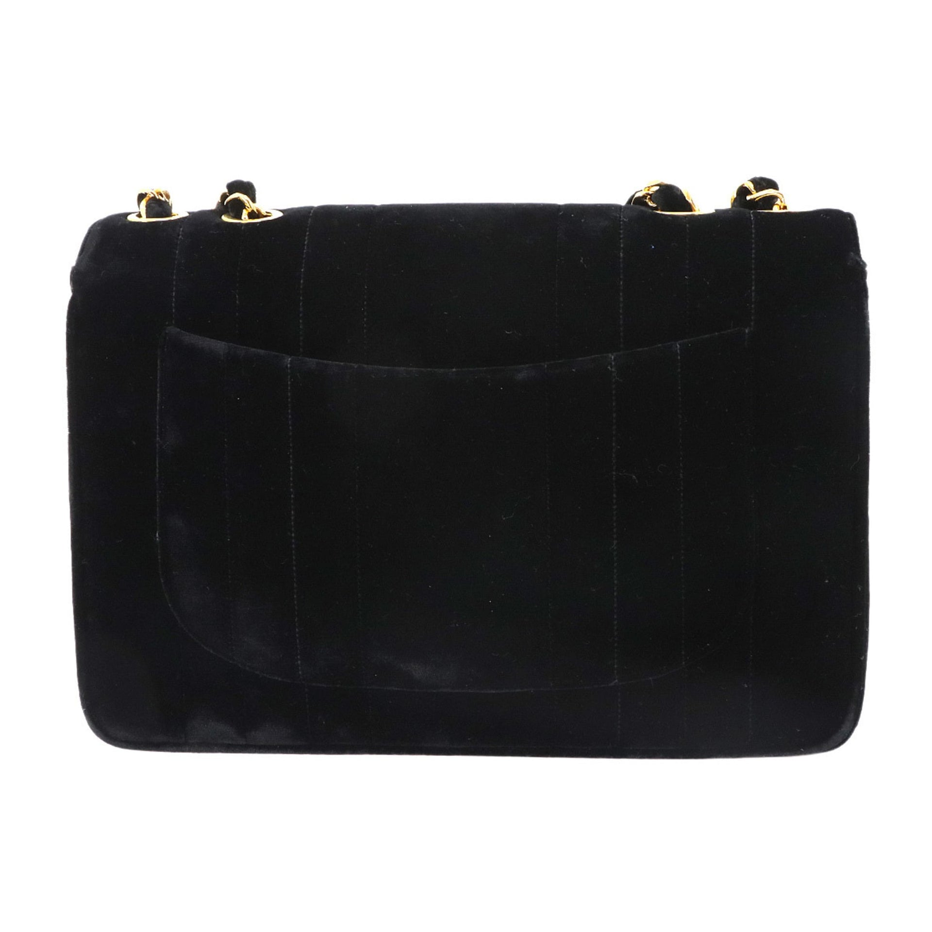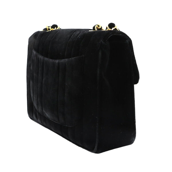 CHANEL Mademoiselle Chain Shoulder Bag in Black Velvet with Gold Hardware