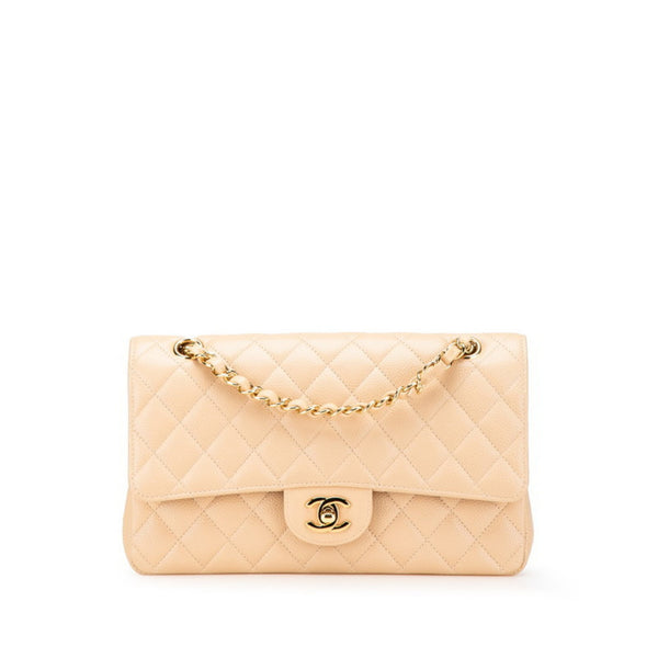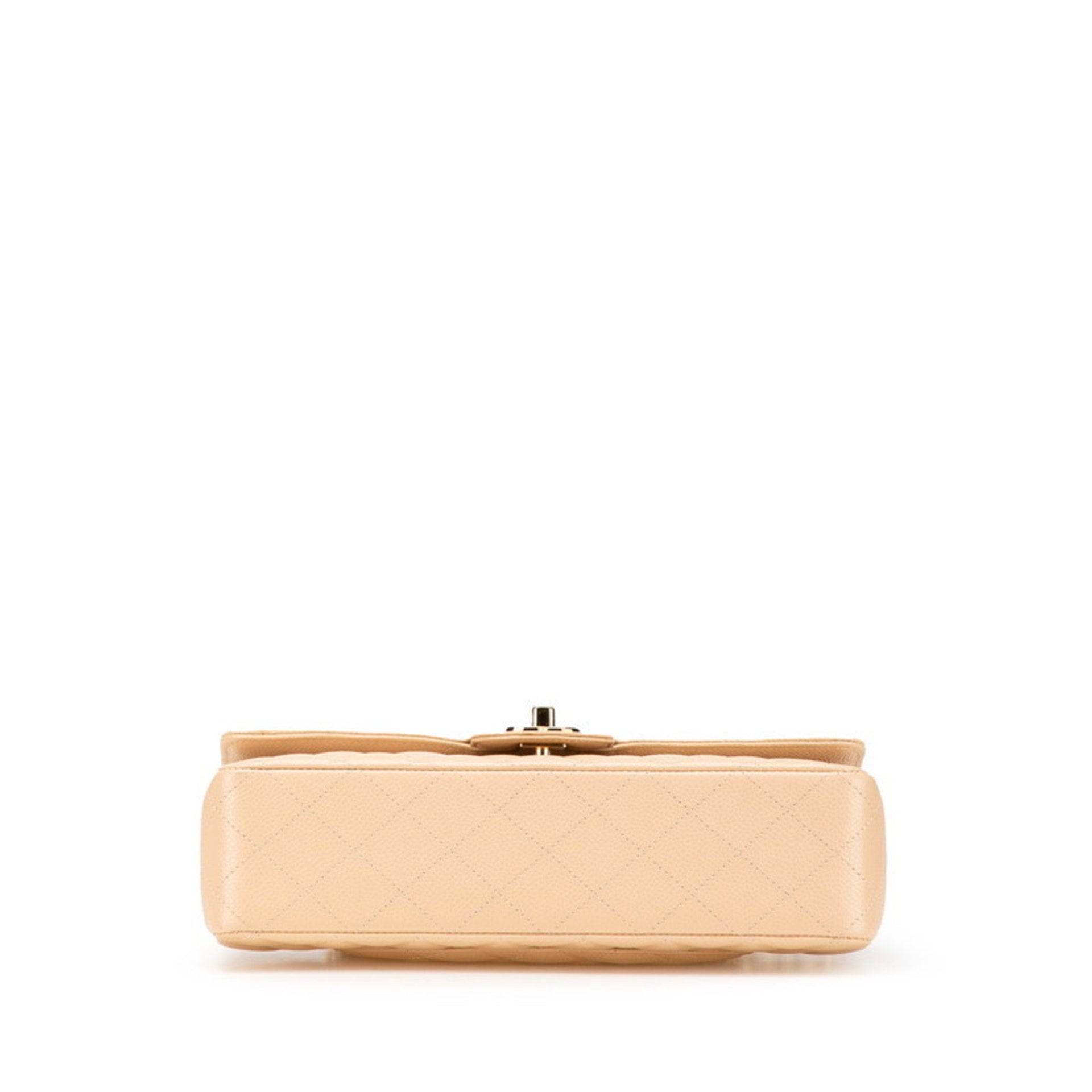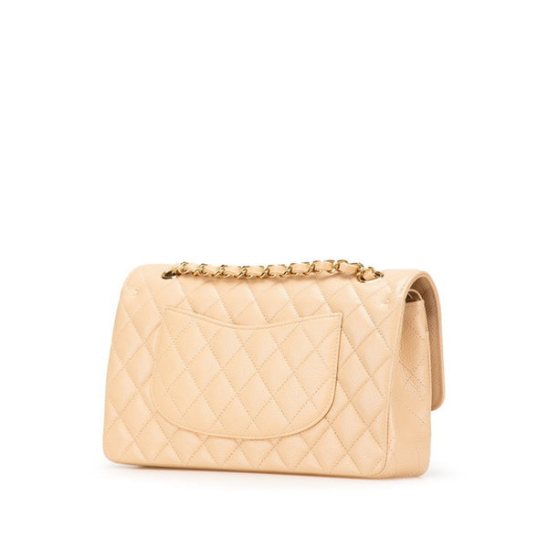 CHANEL Matelasse 25 Double Flap Coco Mark Chain Shoulder Bag in Beige Caviar Leather for Women