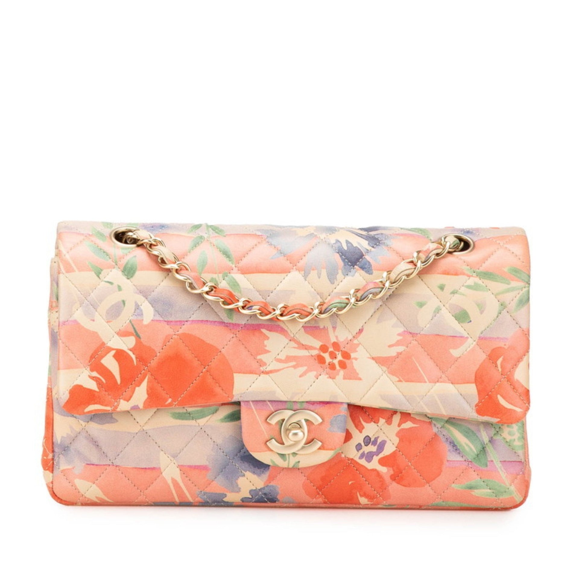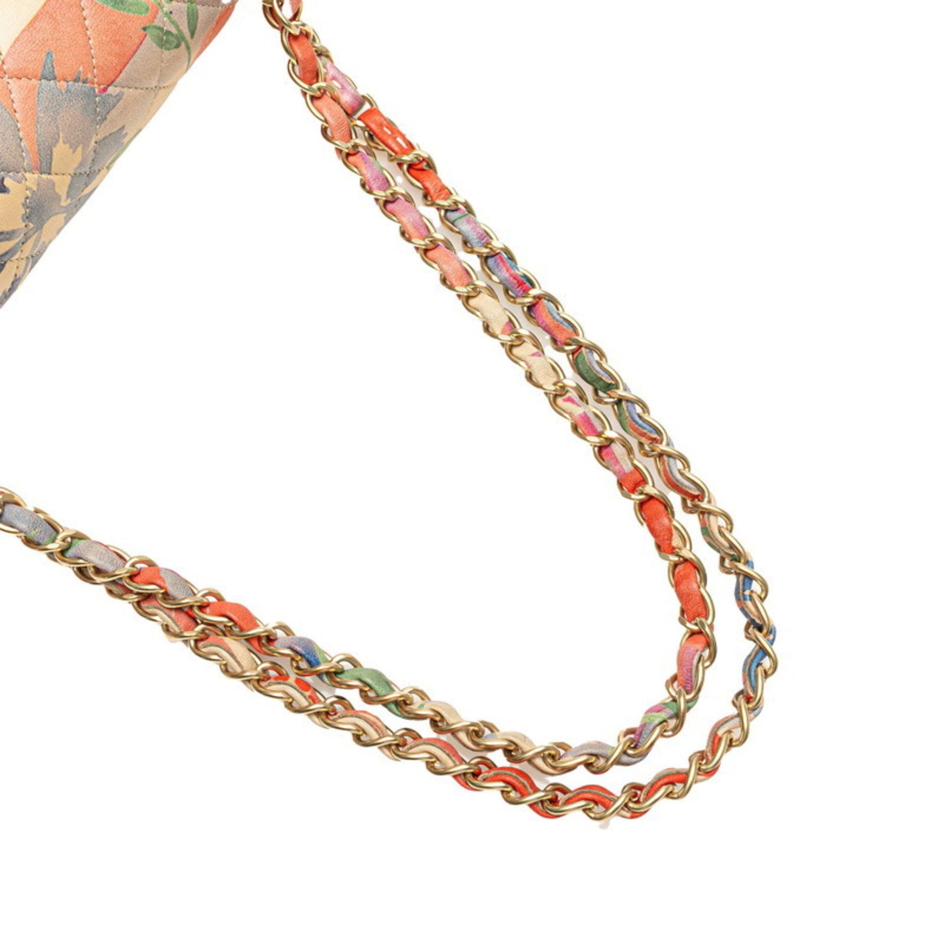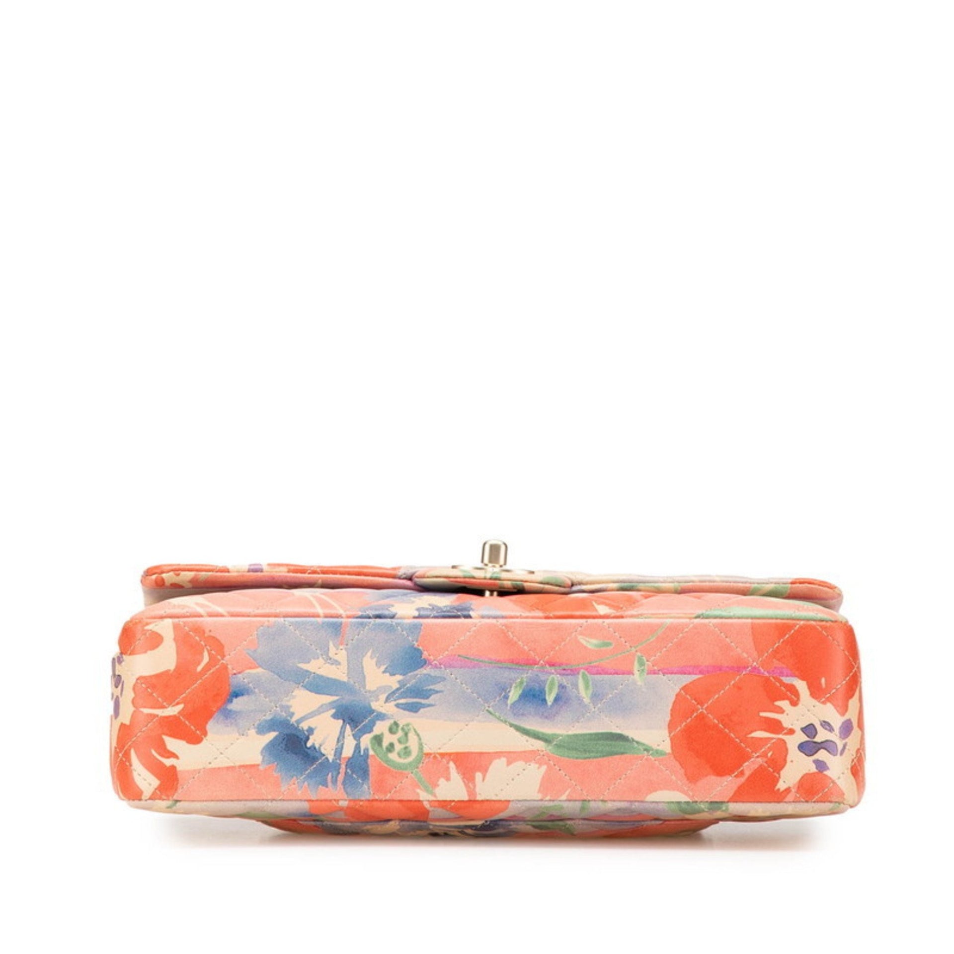 CHANEL Matelasse 25 Double Flap Coco Mark Flower Chain Shoulder Bag in Pink Multicolored Lambskin for Women