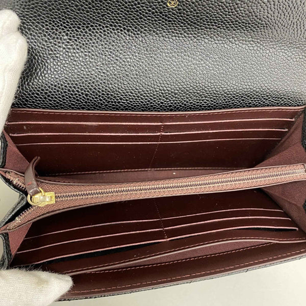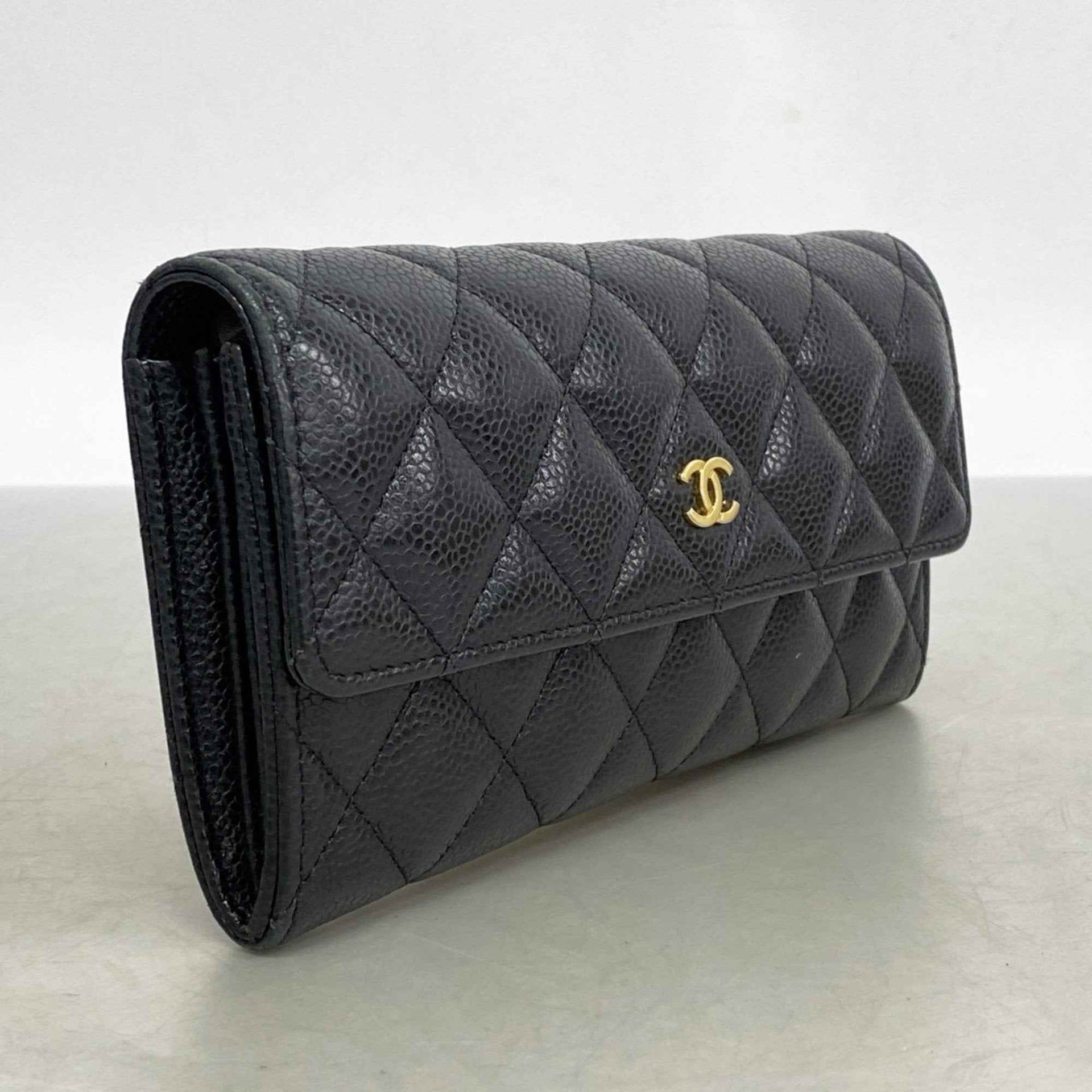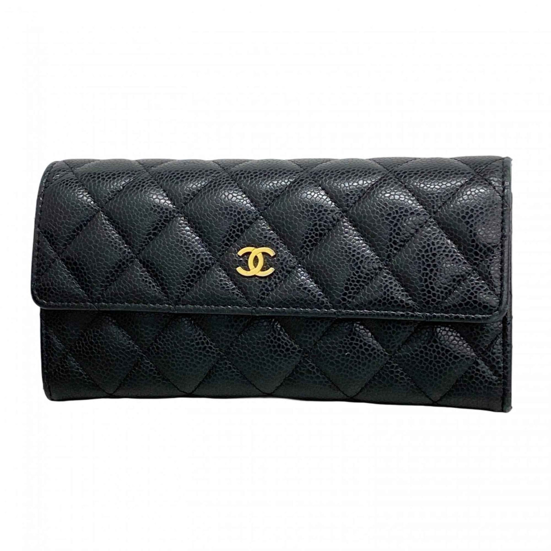 Chanel Matelasse Caviar Leather Long Wallet, Black, Women\'s