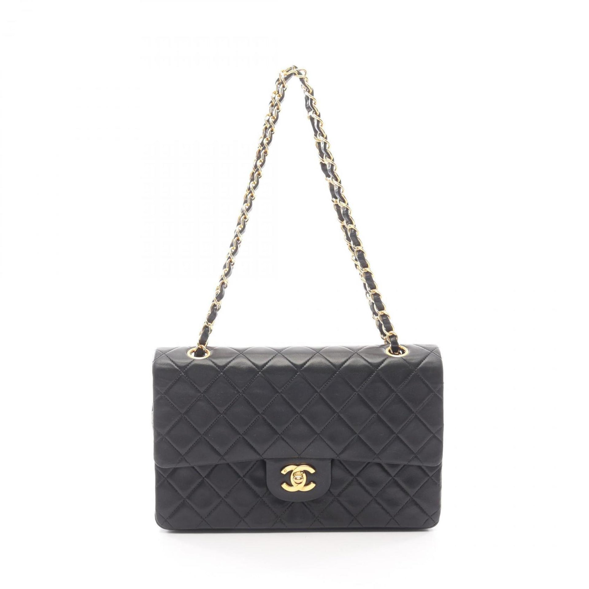 CHANEL Matelasse Double Flap Shoulder Bag in Lambskin Leather, Black