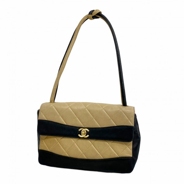 Chanel Matelasse Shoulder Bag, Lambskin, Beige, Black, Women\'s