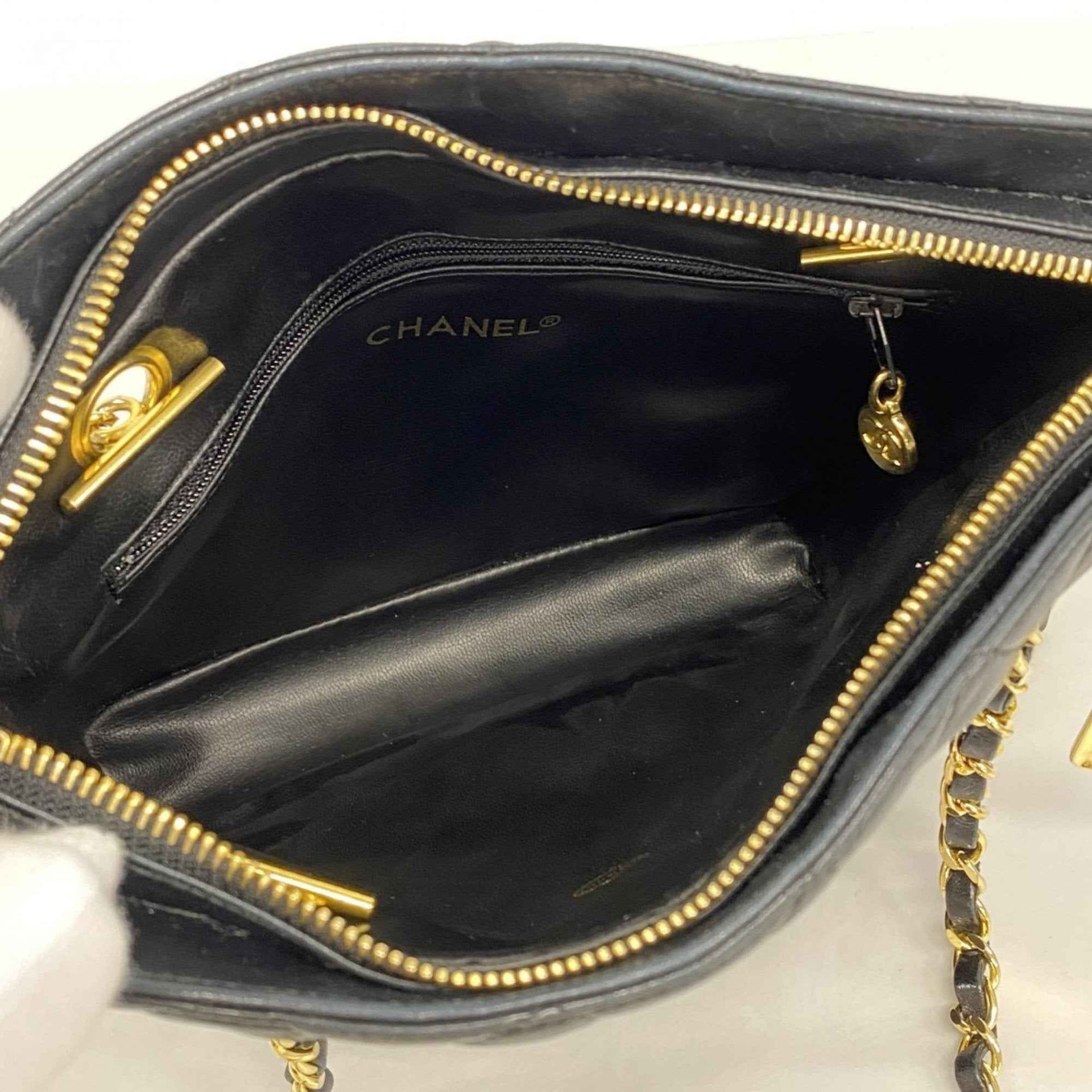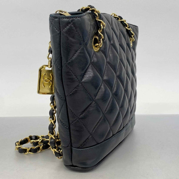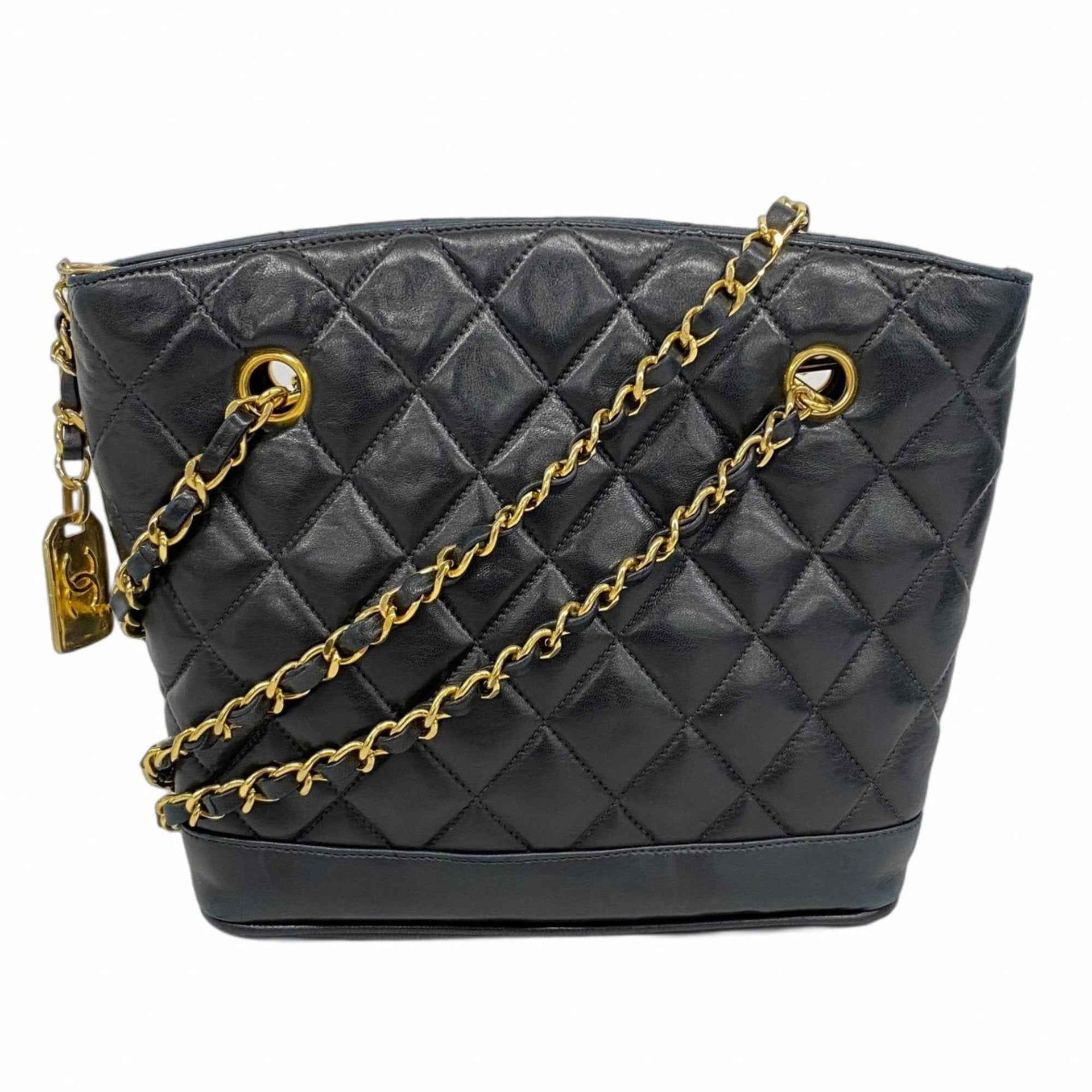 Chanel Matelasse Shoulder Bag with Chain Bag, Lambskin, Black, Women\'s
