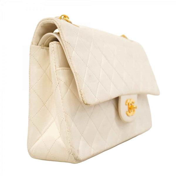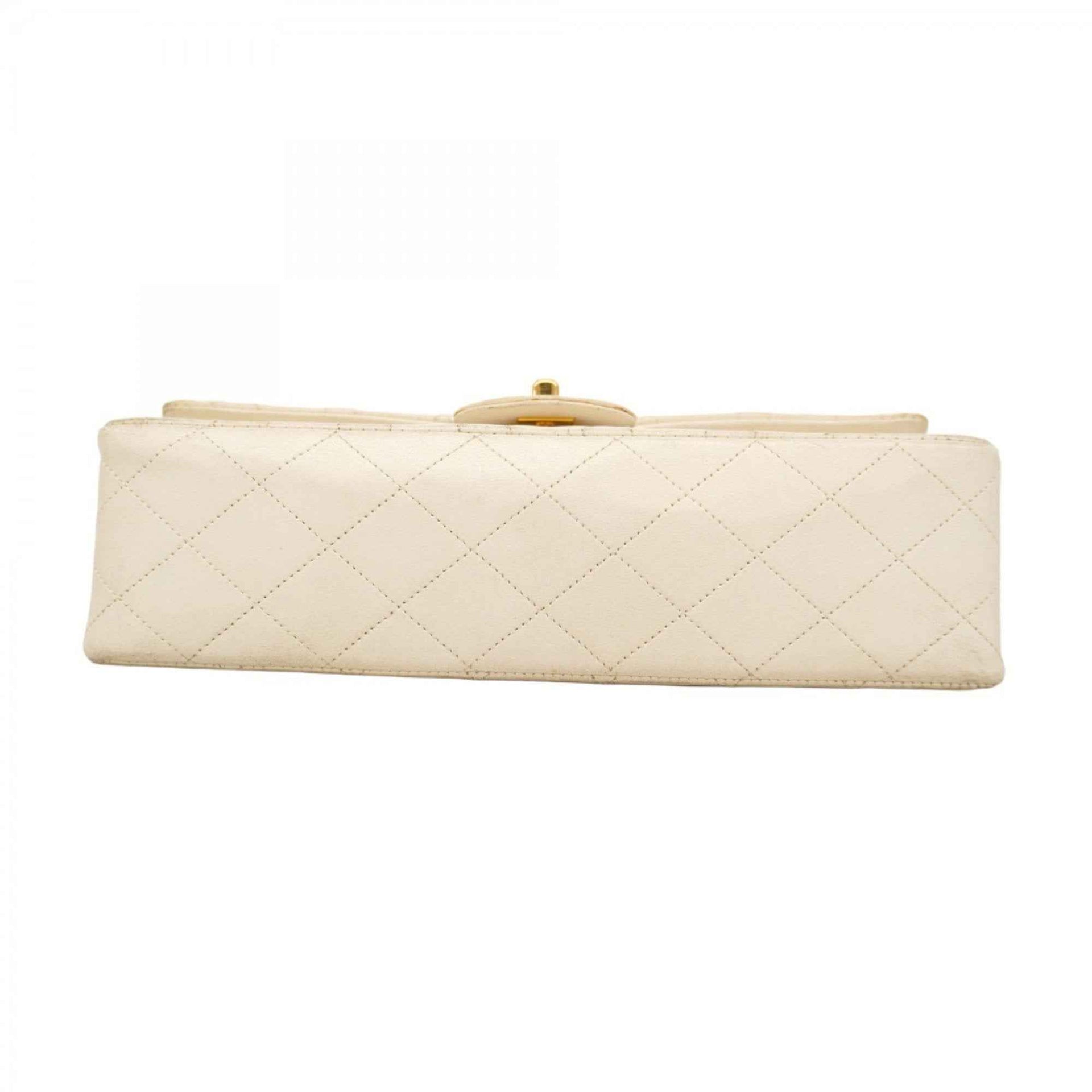 Chanel Matelasse Shoulder Bag with Double Flap and Chain, Lambskin, White, Women\'s, P1617361