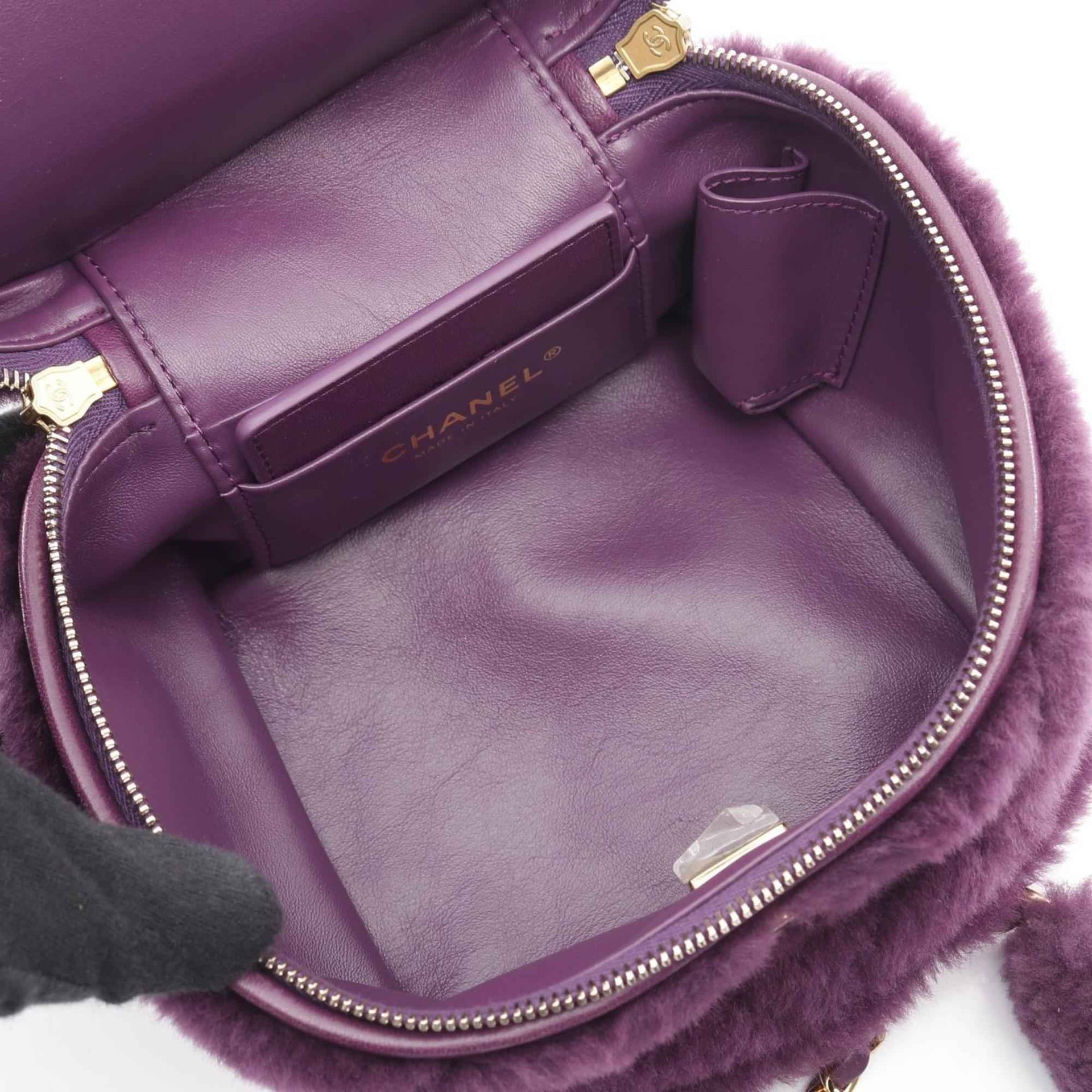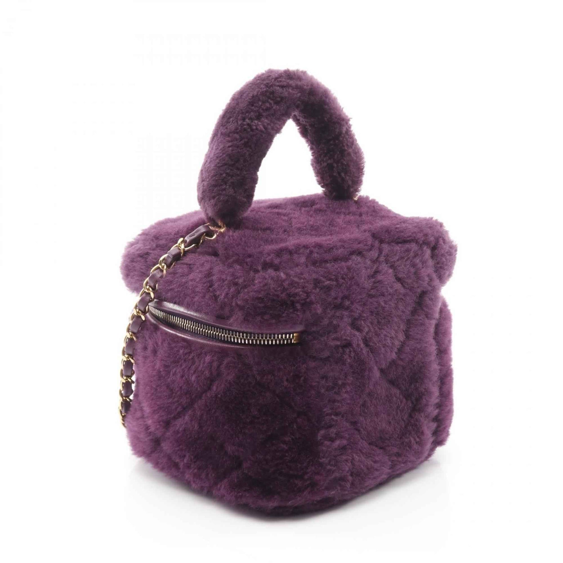 Chanel Matelasse Vanity Shoulder Bag in Purple with Fur