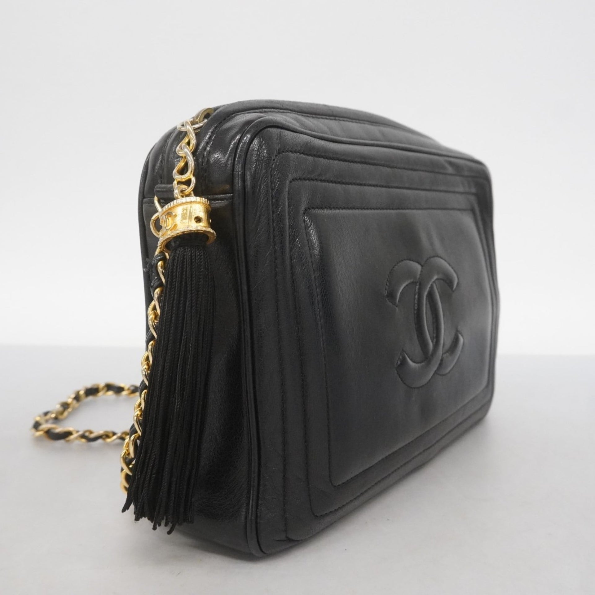 Chanel Shoulder Bag with Chain Bag, Lambskin, Black, Women\'s, P1923492