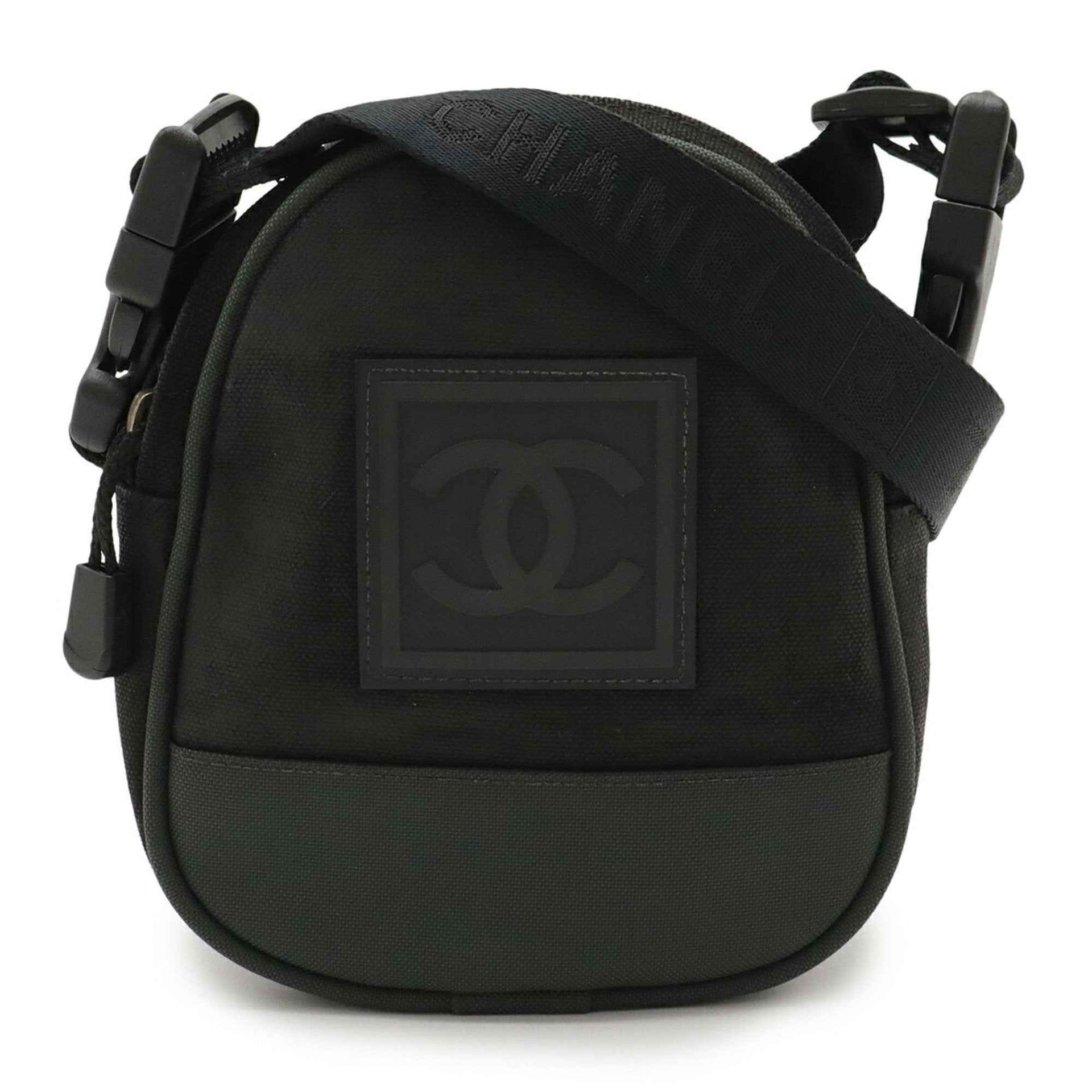 CHANEL Sport Line Coco Mark Shoulder Bag/Waist Bag Nylon Canvas Black/Green A23300