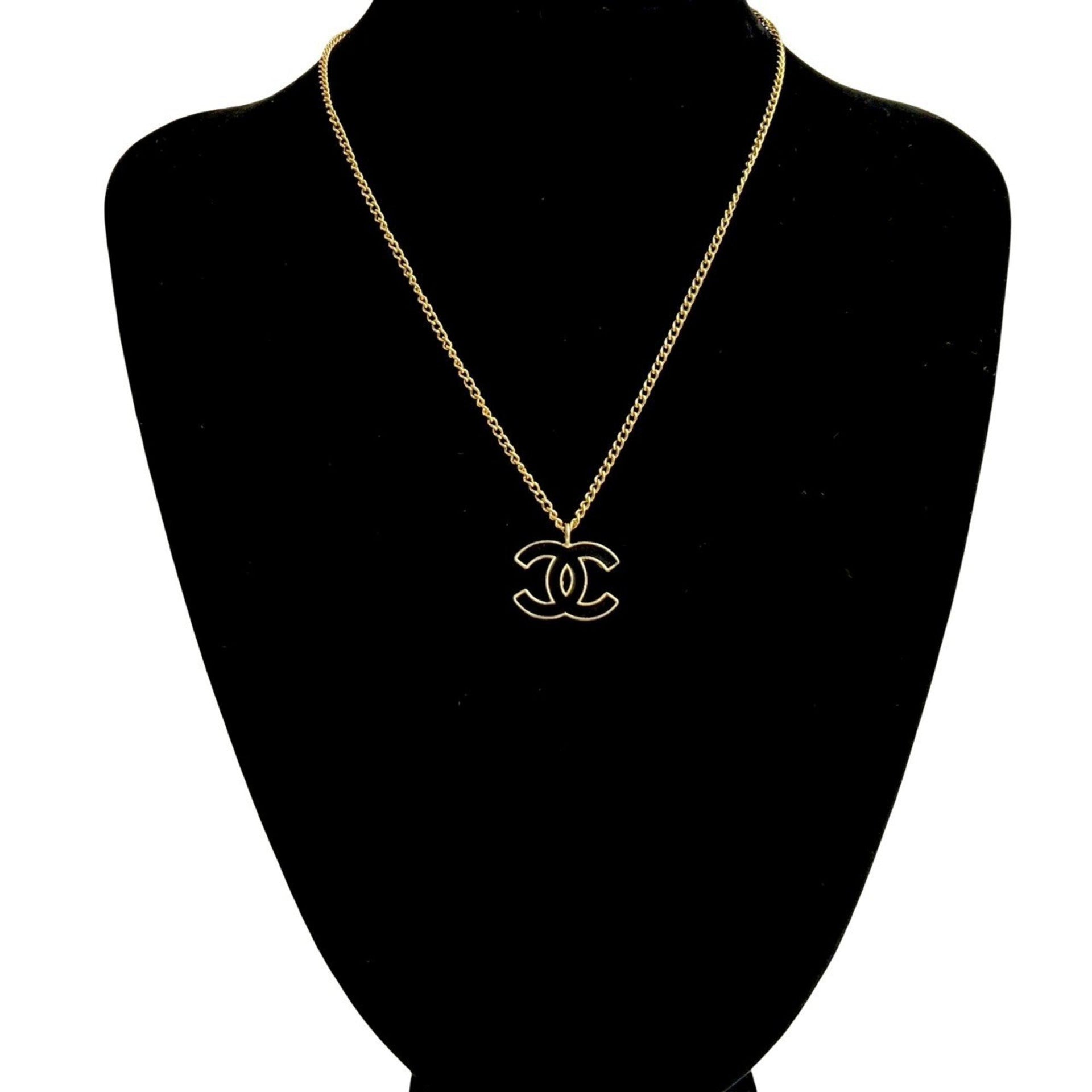 CHANEL Vintage Coco Mark Motif Chain Necklace Pendant Gold 58078
