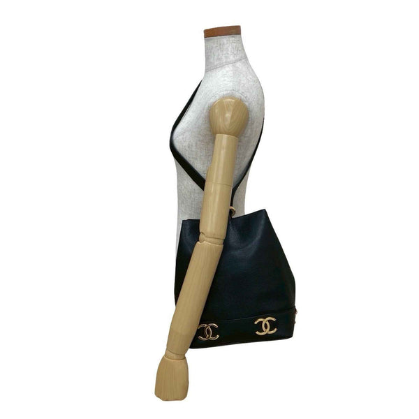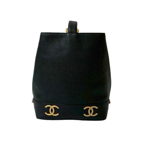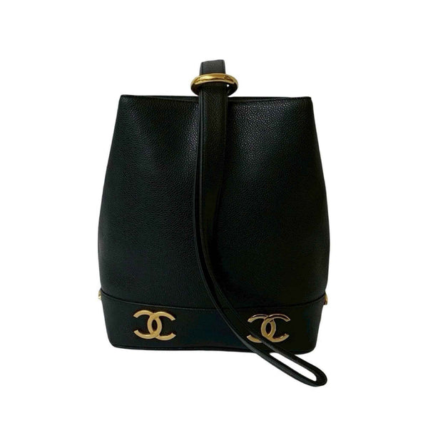 Seal No. 2 CHANEL Vintage Triple Coco Caviar Leather Shoulder Bag in Black -1613