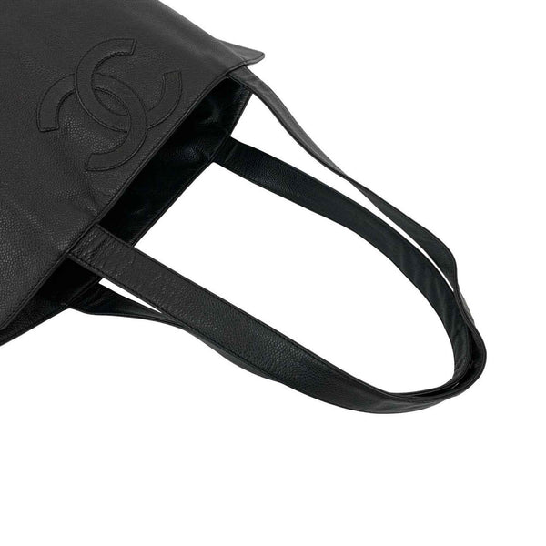 Seal No. 5 CHANEL Vintage Coco Mark Caviar Skin Tote Bag Handbag Black 27272