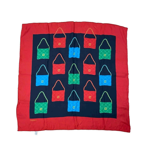CHANEL Coco Mark Matelasse Chain Handbag with Patterned Motif Silk Scarf/Muffler in Red (54704)