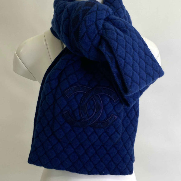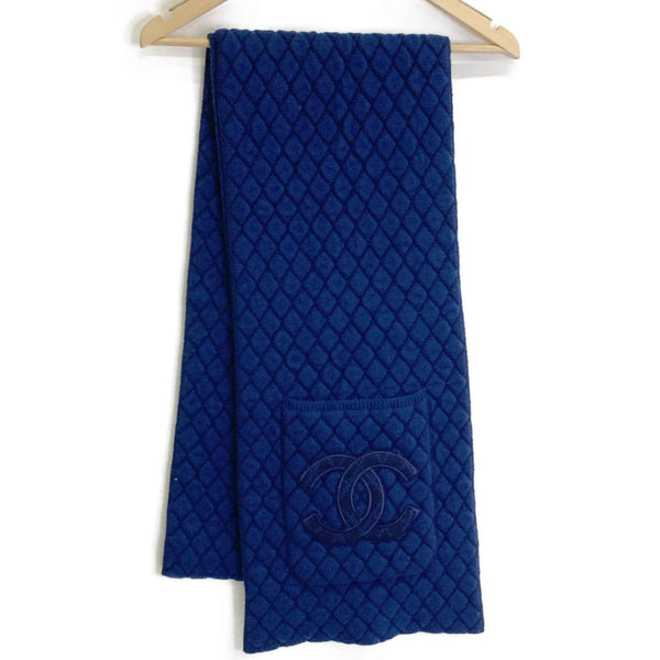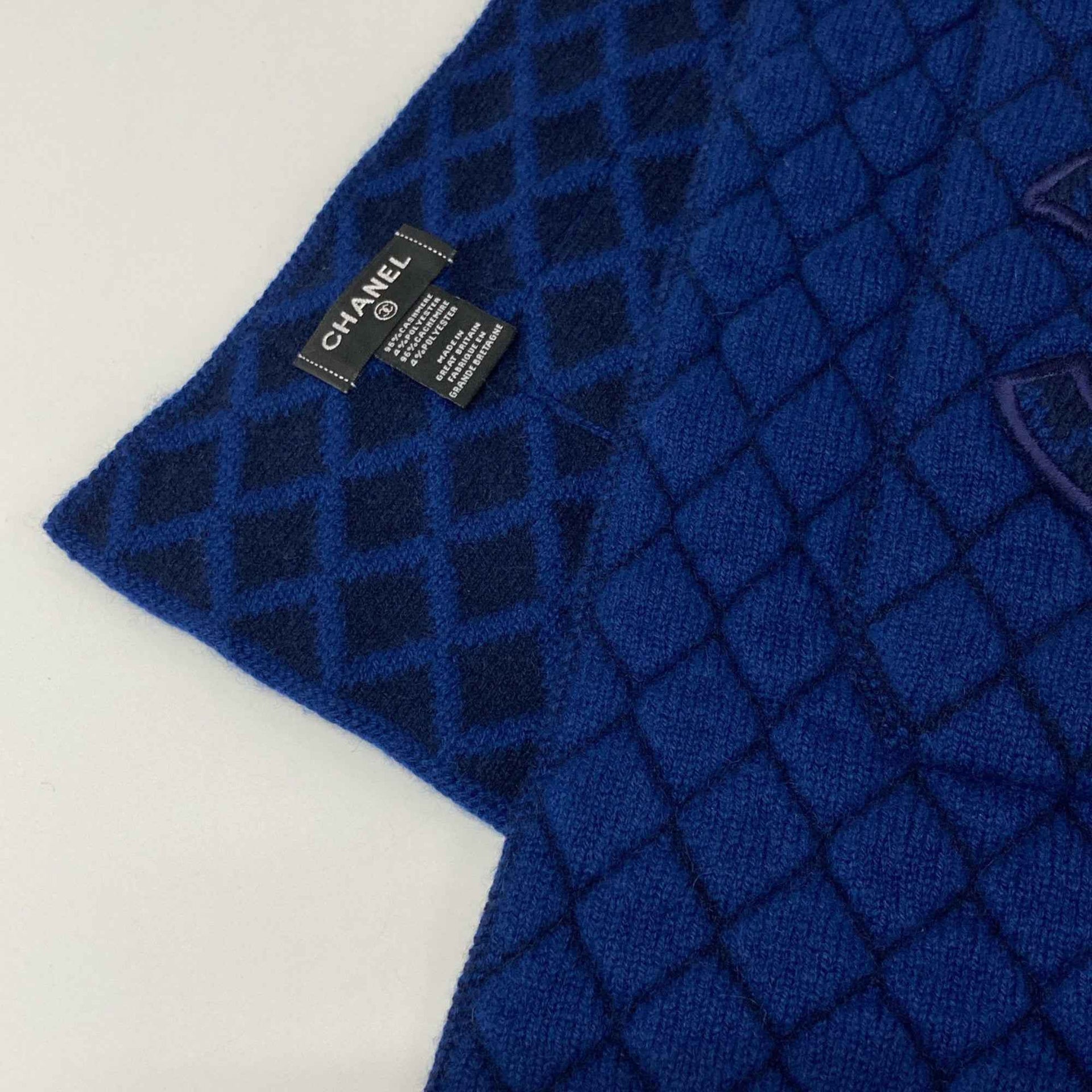 CHANEL Coco Mark Quilted Cashmere Scarf with Pocket, Blue, Women\'s