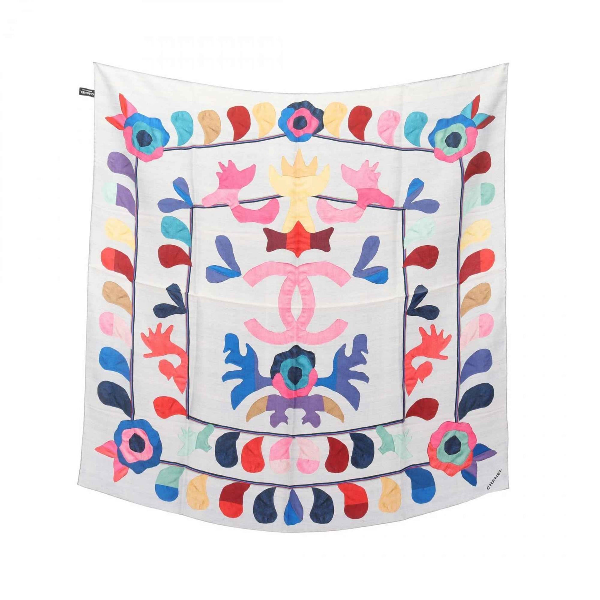CHANEL Coco Mark Silk Scarf for Women, Blue Multicolor