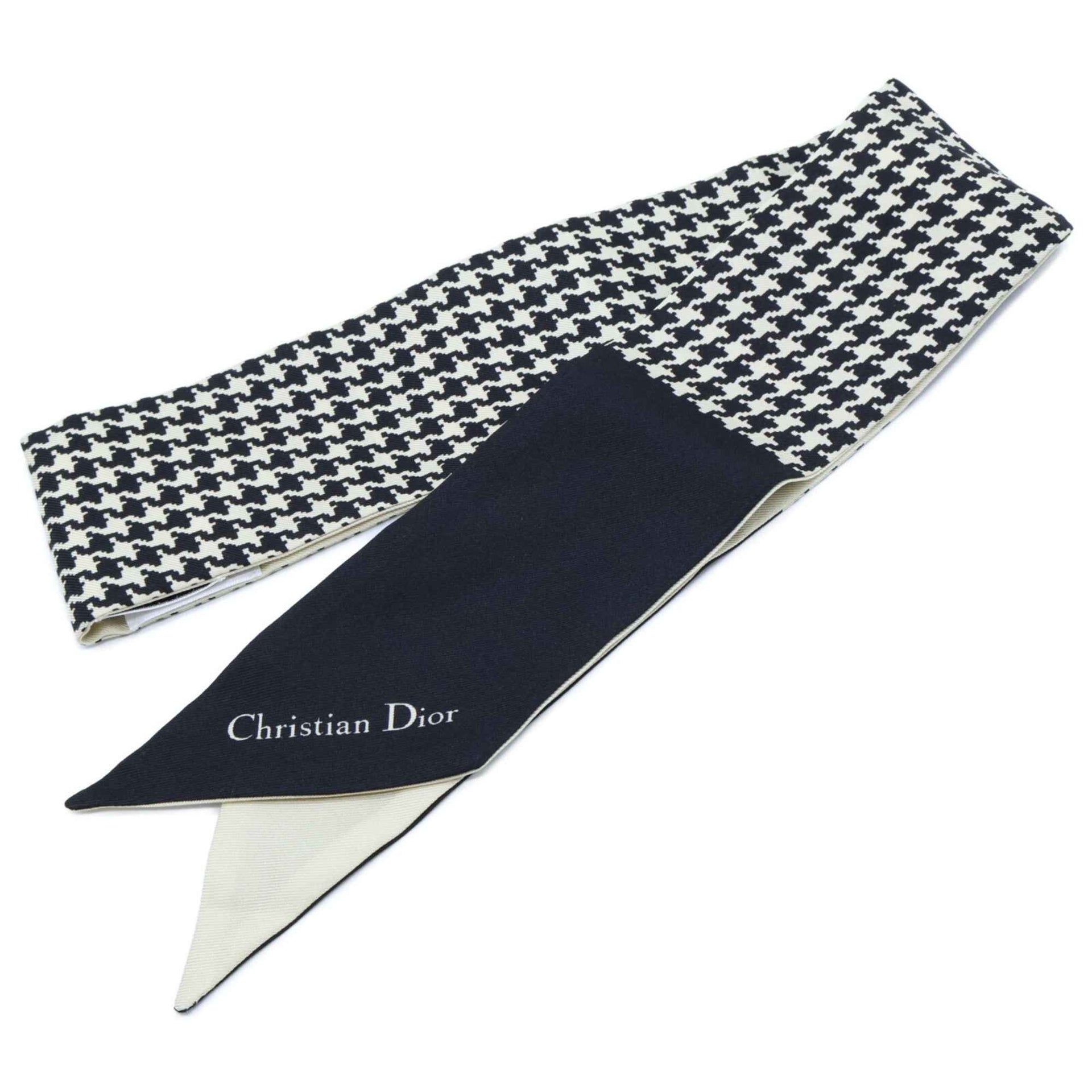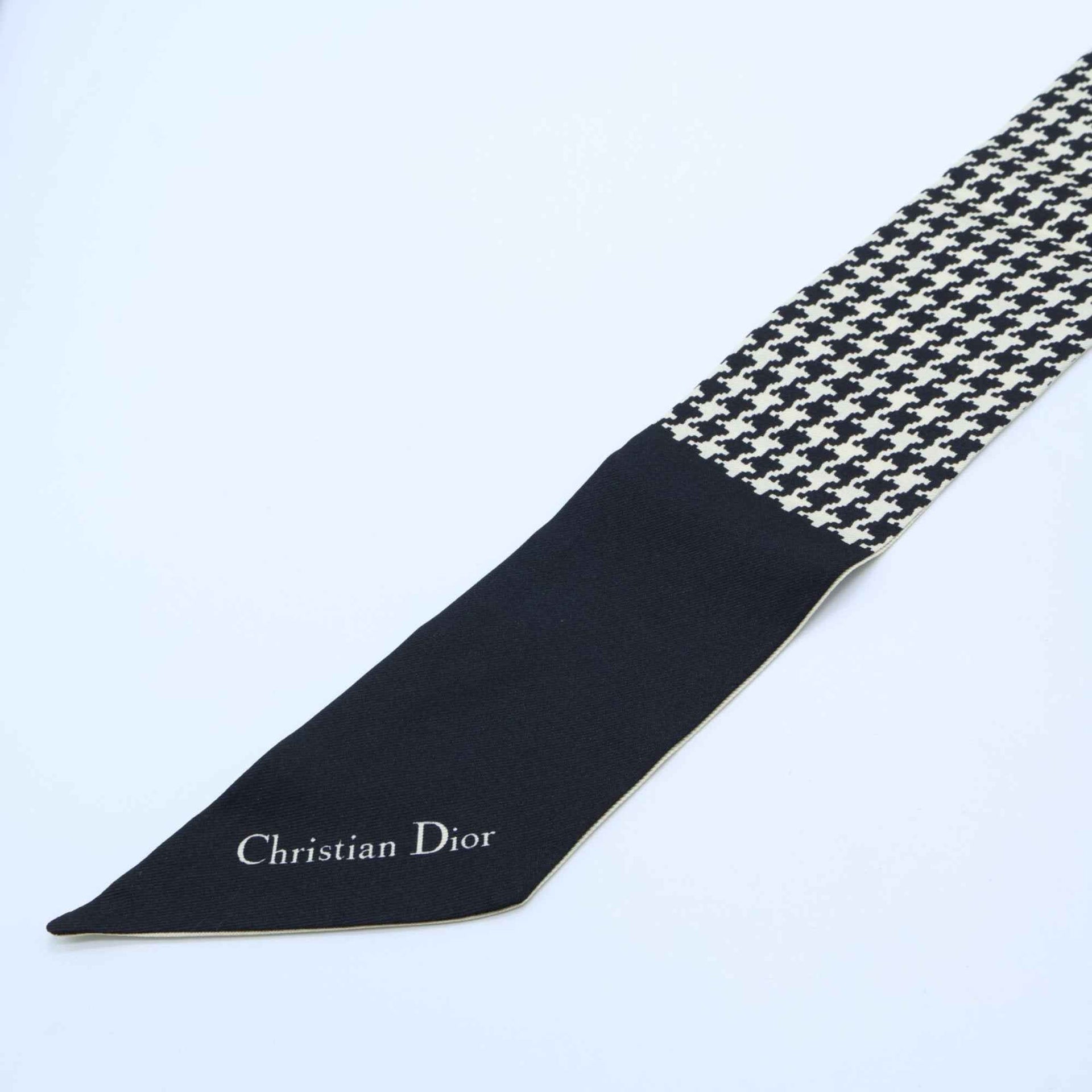 Christian Dior DIOR Logo Mitzah 100% Silk Scarf, Ivory x Black, Women\'s