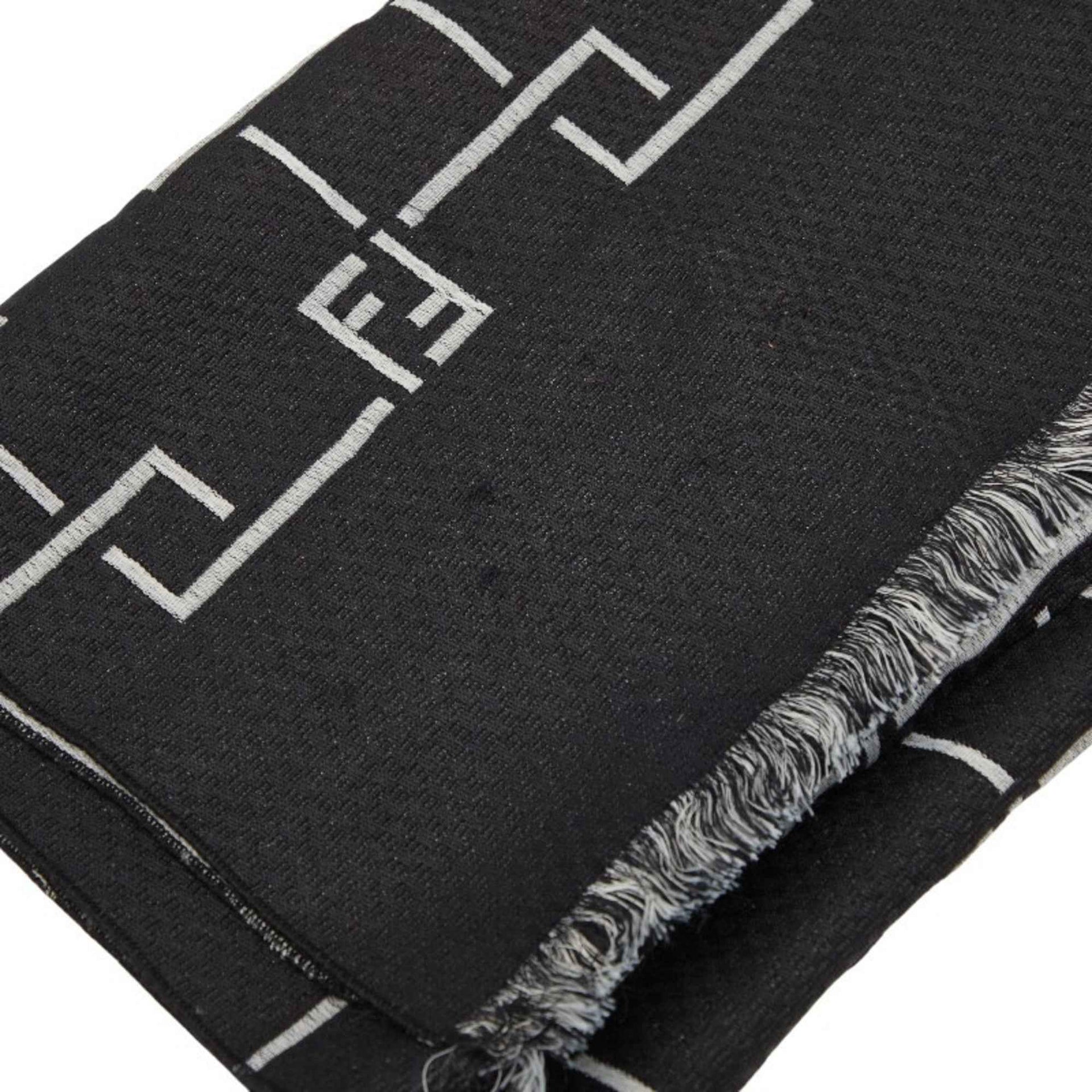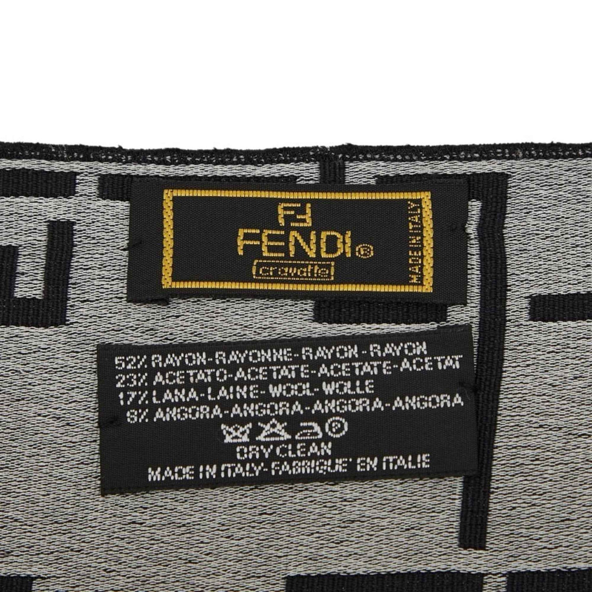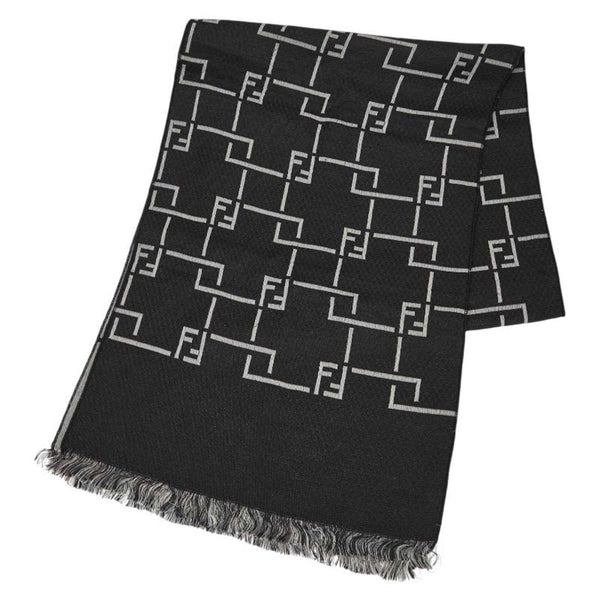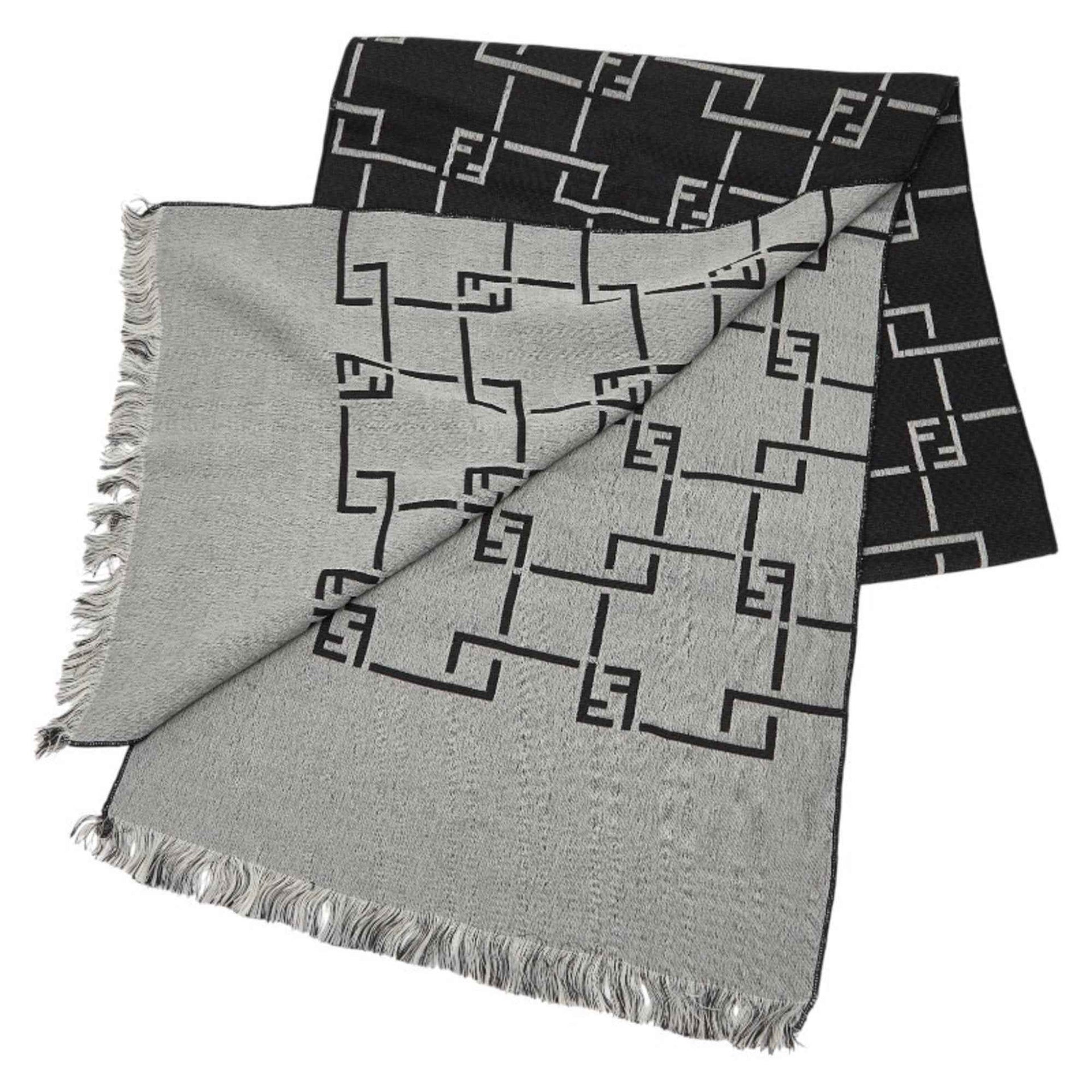 Fendi FF logo scarf in black, gray, rayon, and acetate for women.