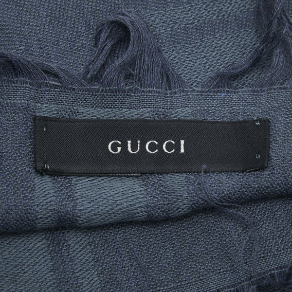 Gucci Logo GG Pattern Diamante Stole Scarf Muffler Shawl Blue Cotton Women\'s GUCCI