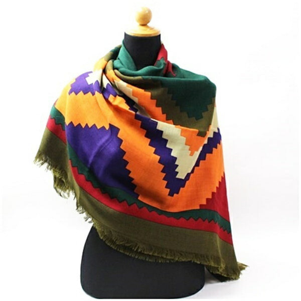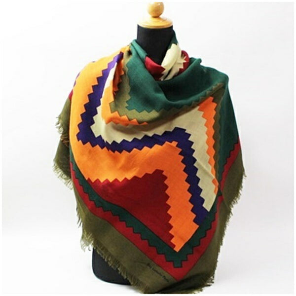 Guy Laroche Women\'s Large Wool Scarf/Shawl in Khaki and Multicolor
