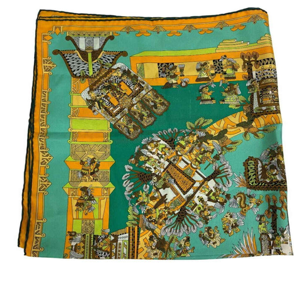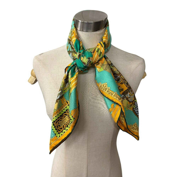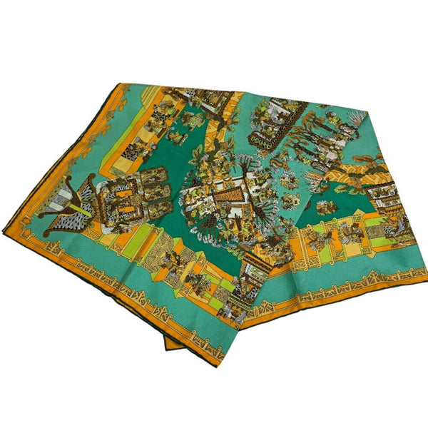 HERMES Carré 90 ASTRES et SOLEILS Celestial Bodies and the Sun Scarf Muffler Green