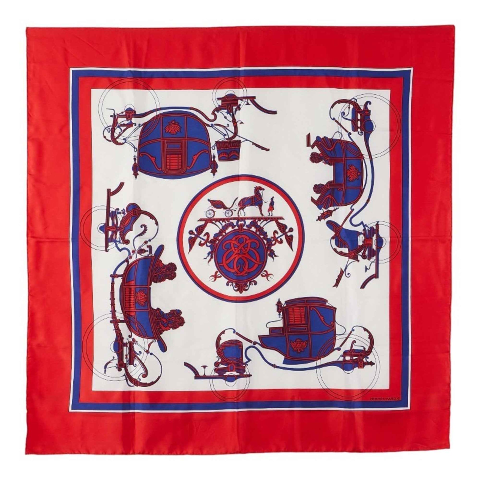 Hermès Carré 90 EX-LIBRIS Scarf, Red, White, Multicolor, Silk, Women\'s, HERMES