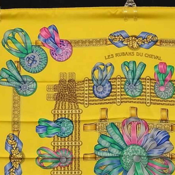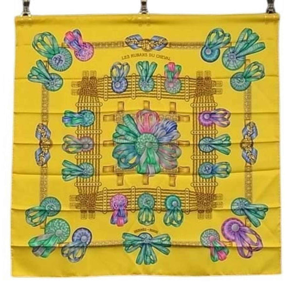 HERMES Carré 90 Scarf - Multicolor 100% Silk Women\'s LES RUBANS DU CHEVAL Large Horse Ribbon