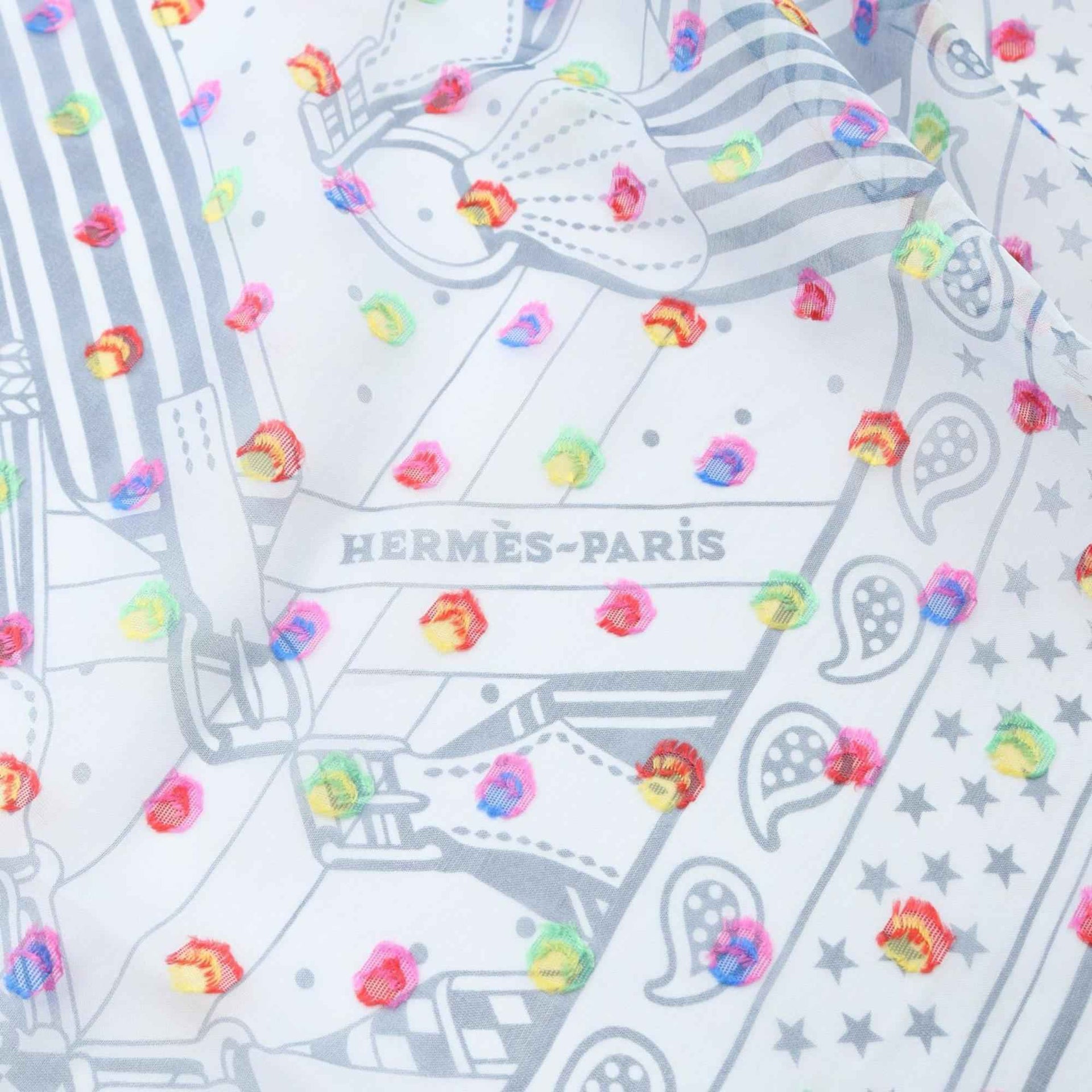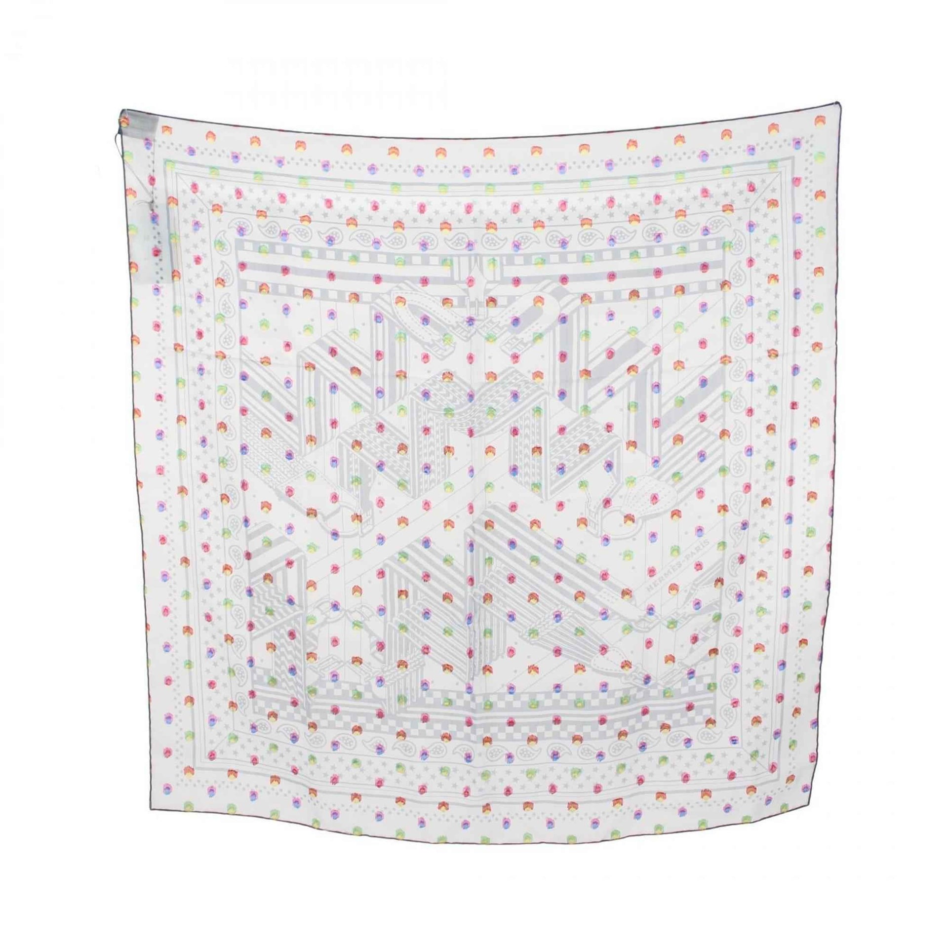Hermès HERMES Carré 60 Muslin Scarf \"SANGLES EN ZIGZAG BANDANA\" Silk for Women, Blue/Multicolor