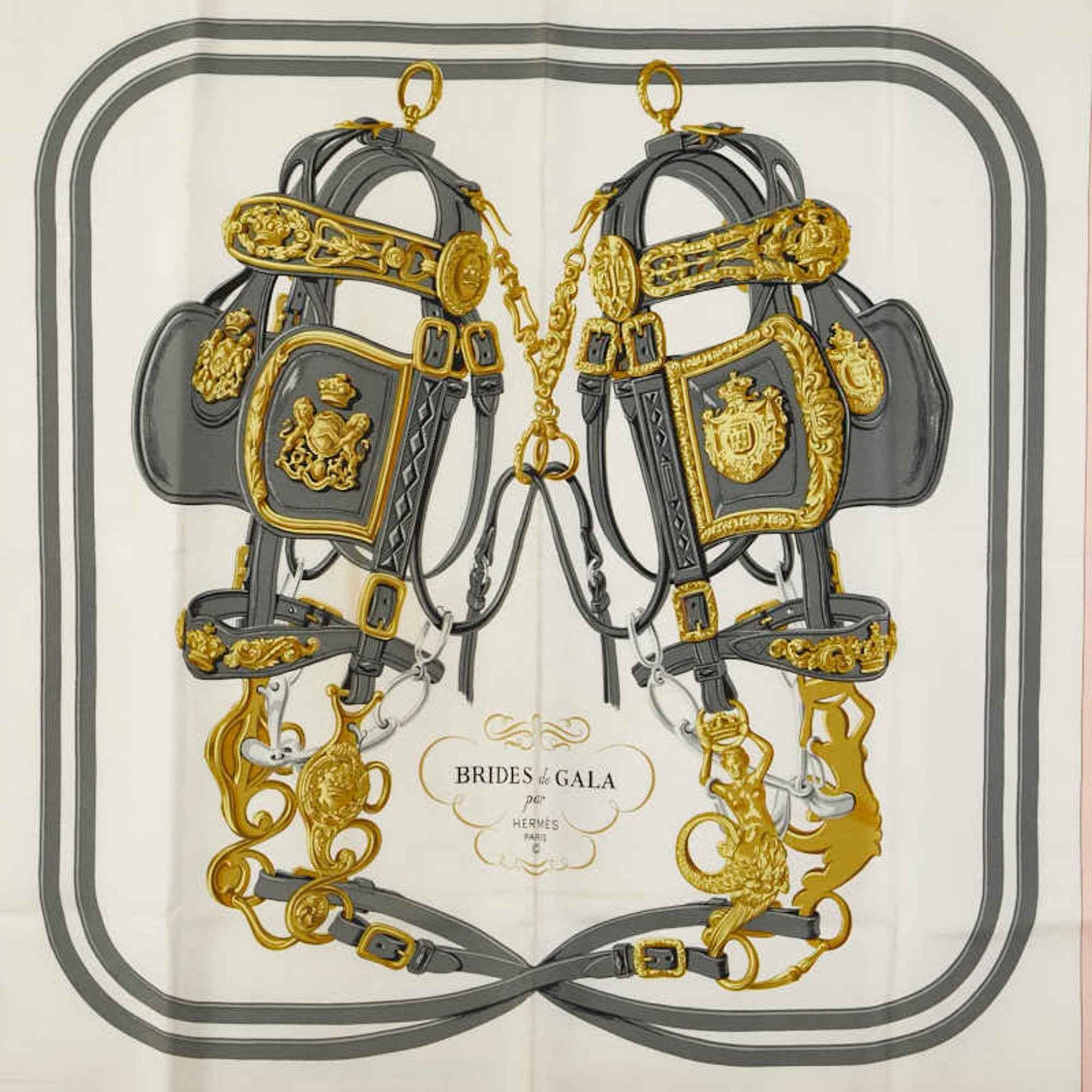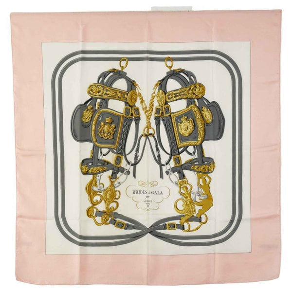 Hermes Hermès Carré 90 BRIDES de GALA Ceremonial Horse-Ridge Scarf, Pink, White, Multicolor, Silk, Women\'s