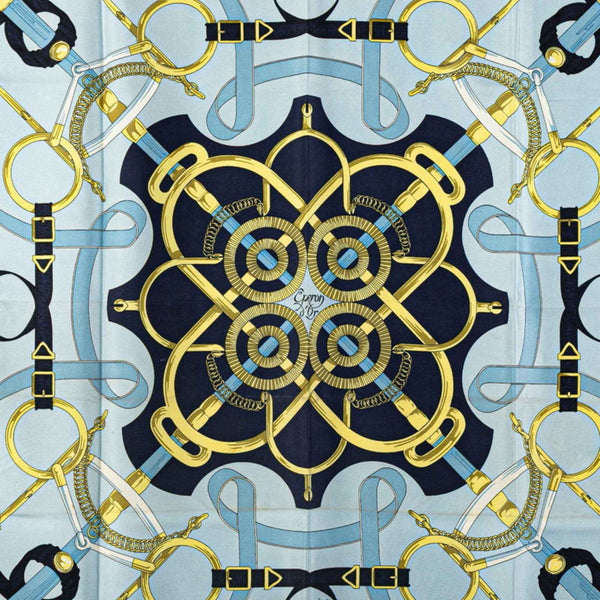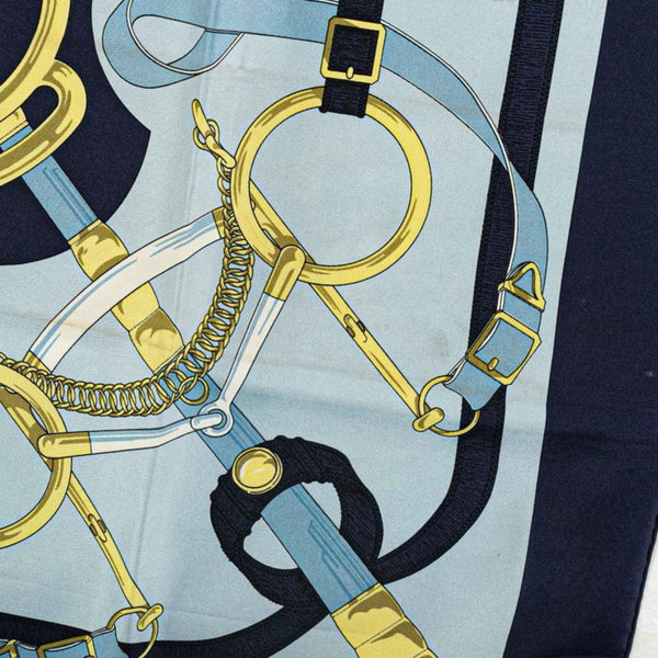 Hermes Hermès Carré 90 Eperon d\'or Golden Spur Scarf, Navy, Light Blue, Multicolor, Silk, Women\'s