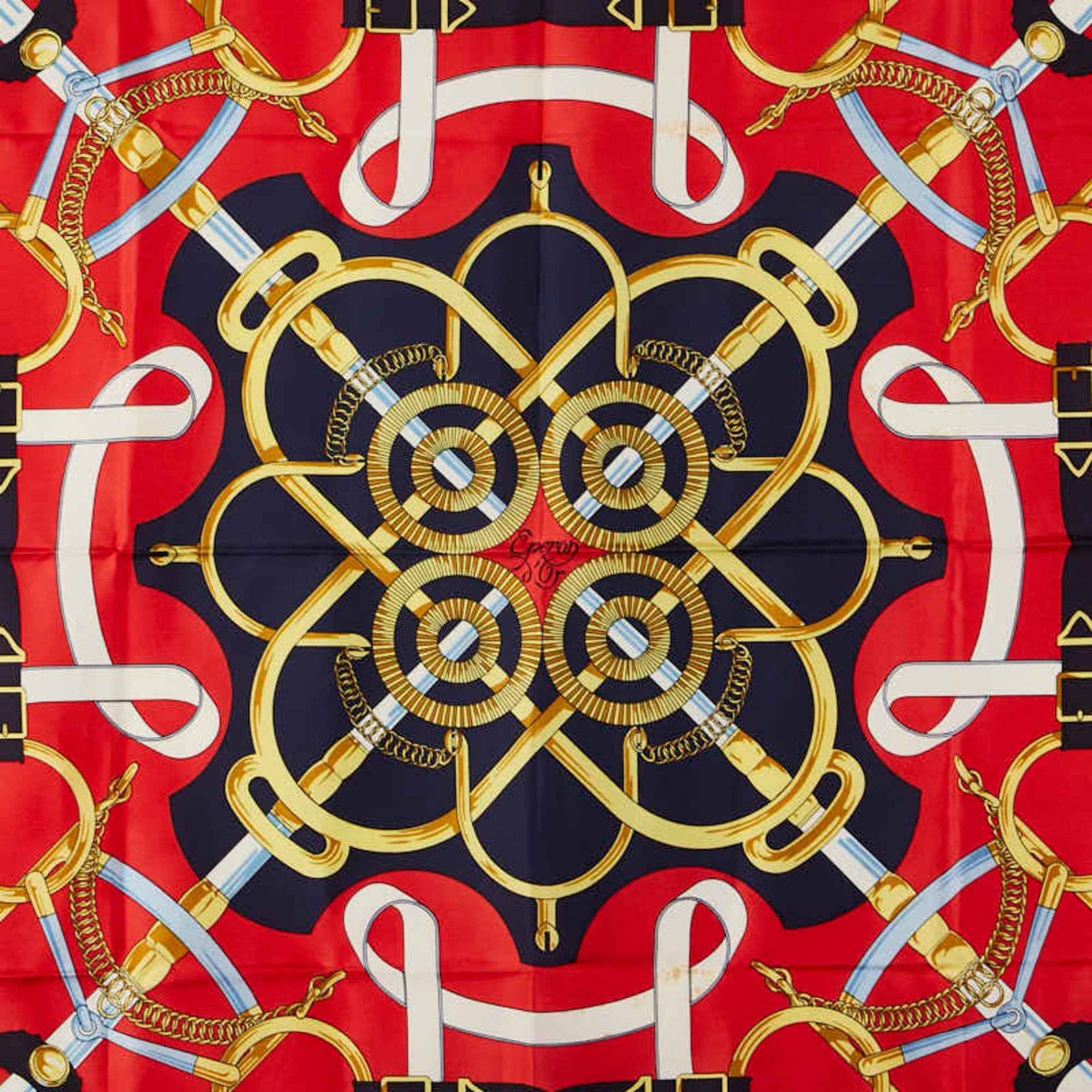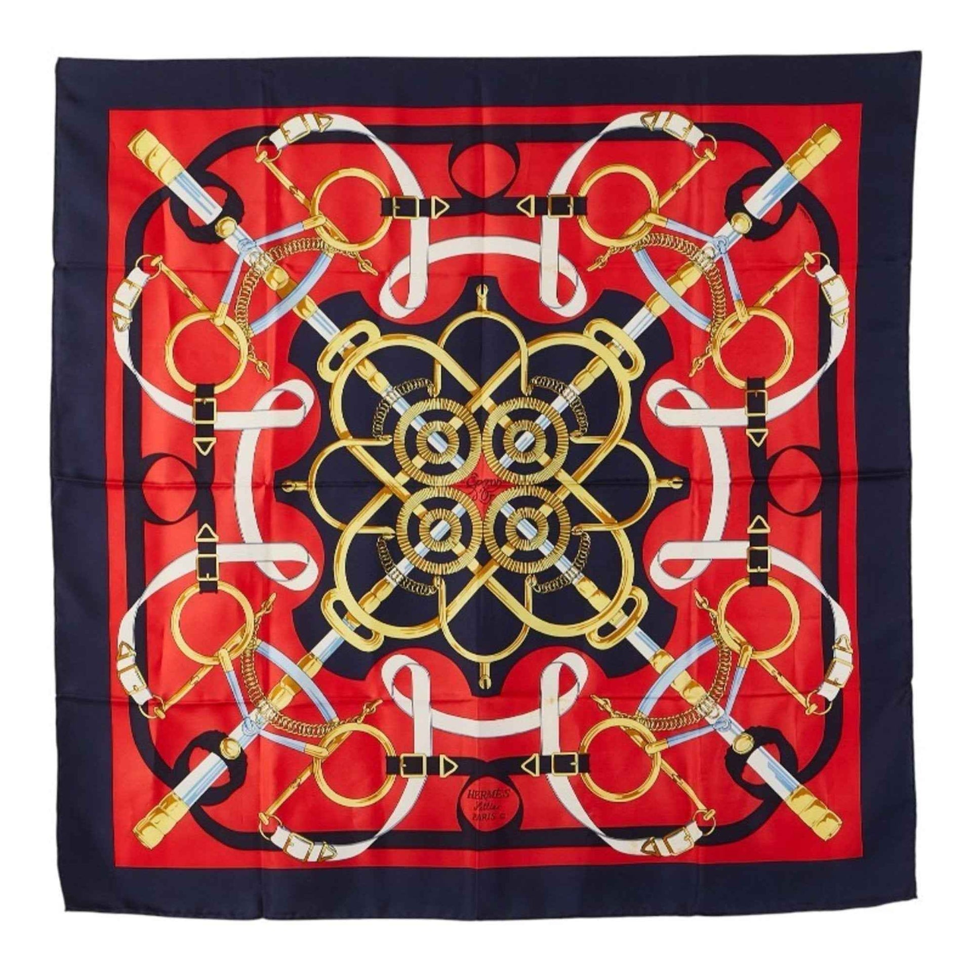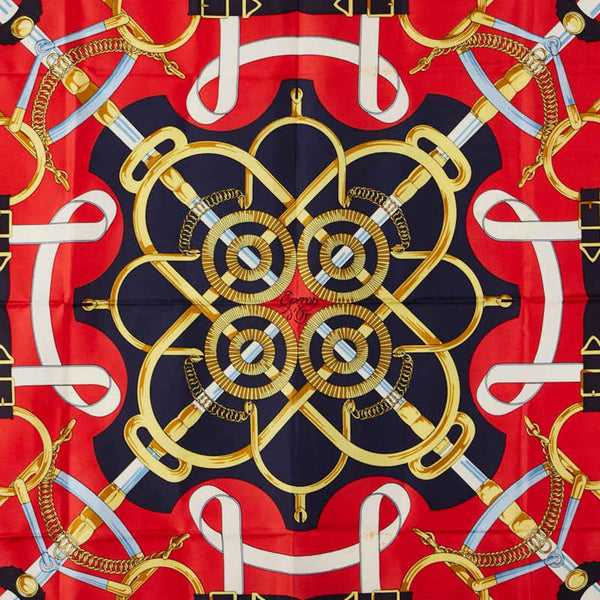 Hermes Hermès Carré 90 Eperon d\'or Golden Spur Scarf, Navy, Red, Multicolor, Silk, Women\'s