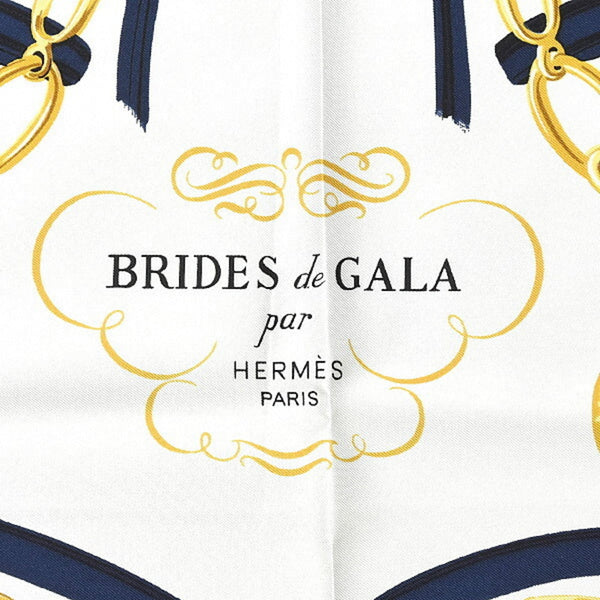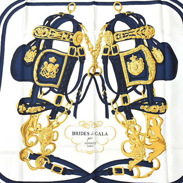 Hermes Hermès Carré 90 Scarf, Women\'s, BRIDES DE GALA, Ceremonial Bridle, Large, Silk, Navy and White