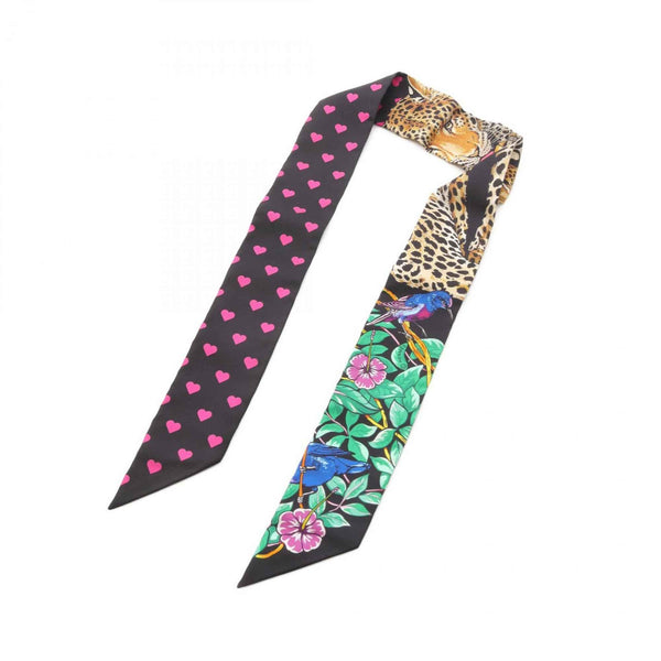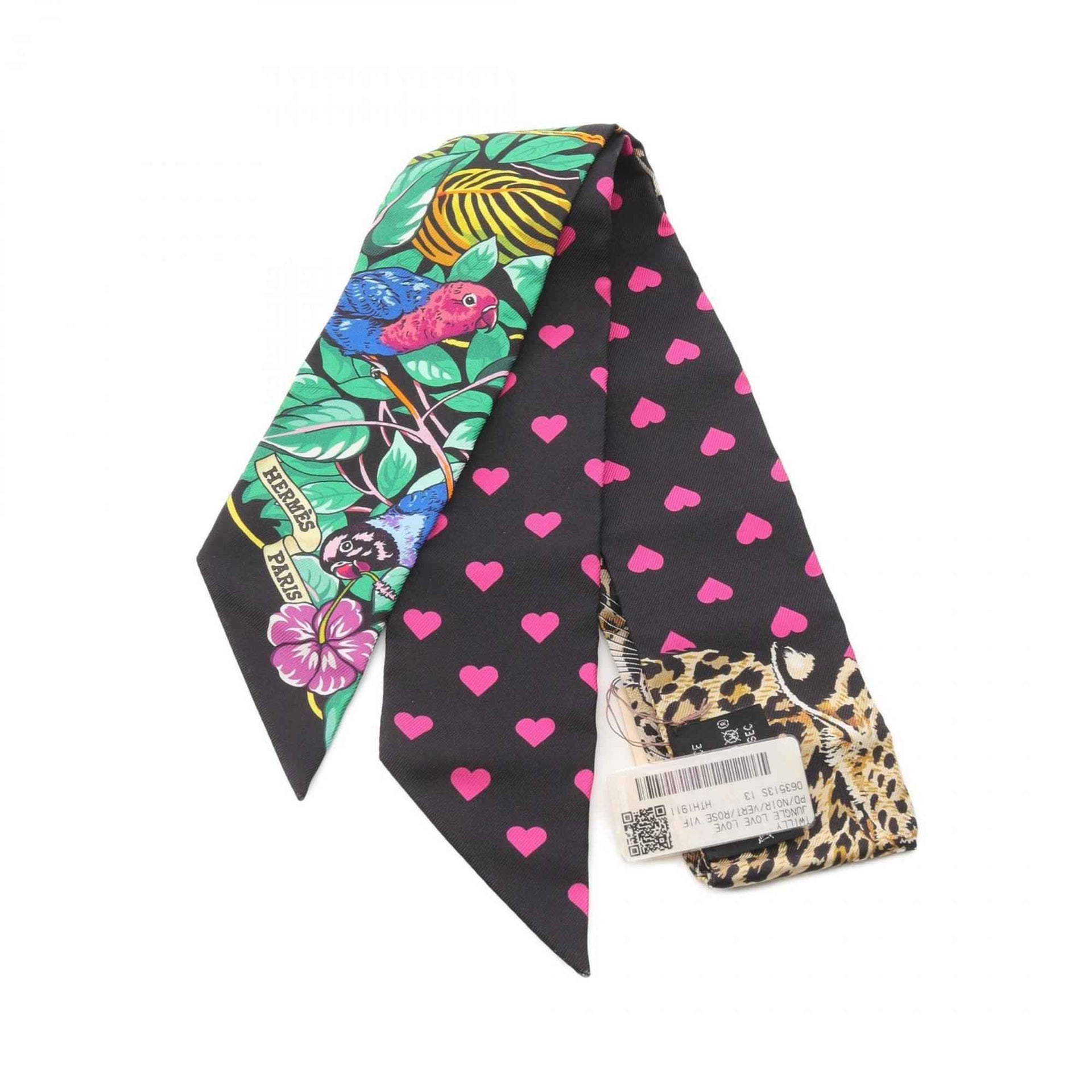 Hermes Hermès JUNGLE LOVE Twilly Silk Scarf for Women, Black/Multicolor