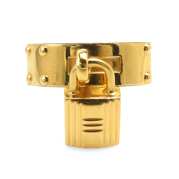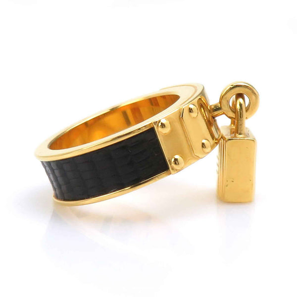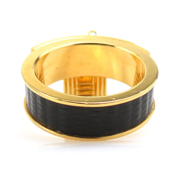 Hermes Hermès Kelly Charm Scarf/Muffler Ring in Metal/Leather, Gold/Black, Women\'s, e61453