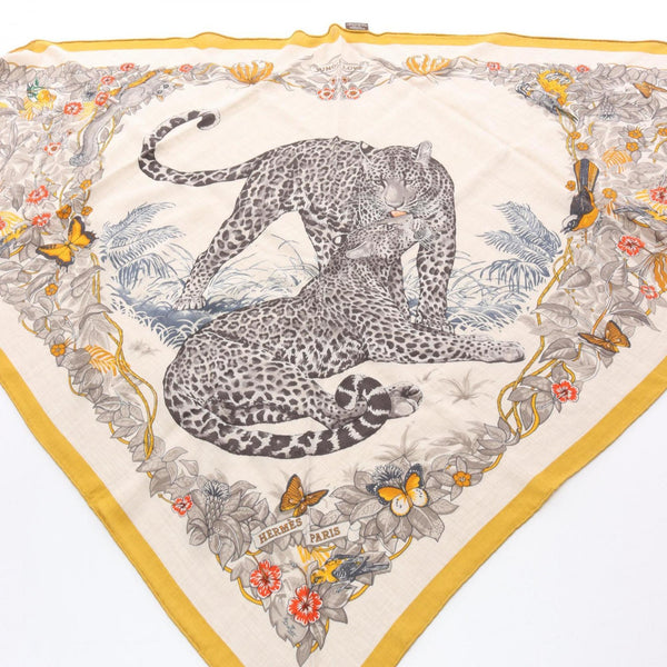 Hermes Hermès Triangle Geant Jungle Love Scarf, Silk, Cashmere, Women\'s, Brown, Multicolor