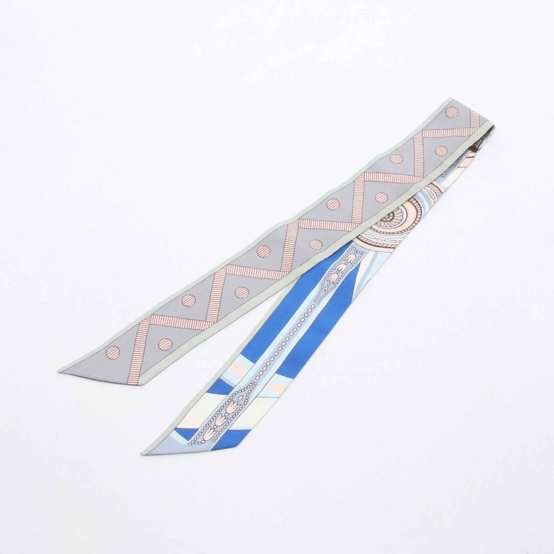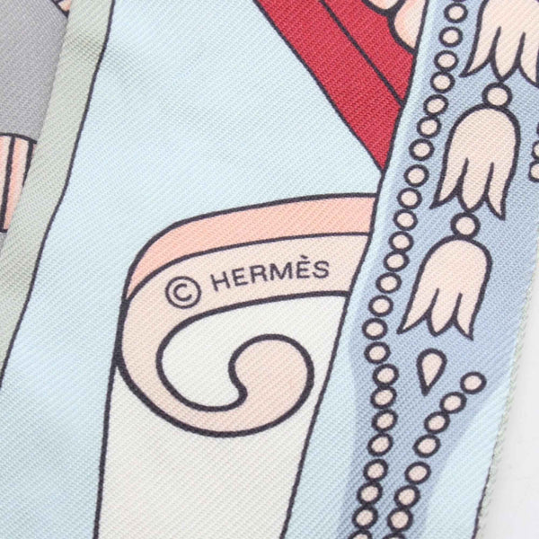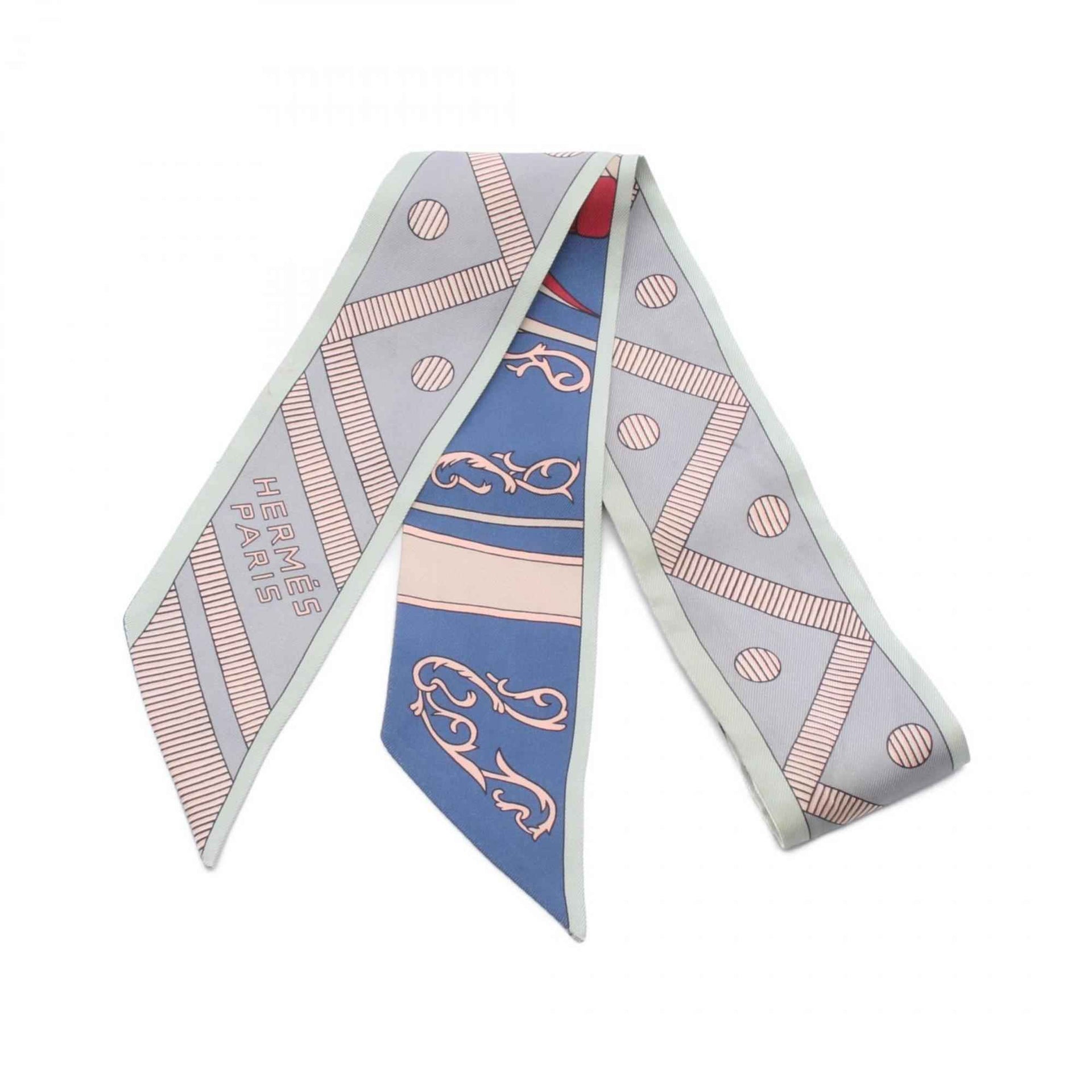 Hermes Hermès Twilly Balade En Berline Silk Scarf for Women in Gray and Multicolor