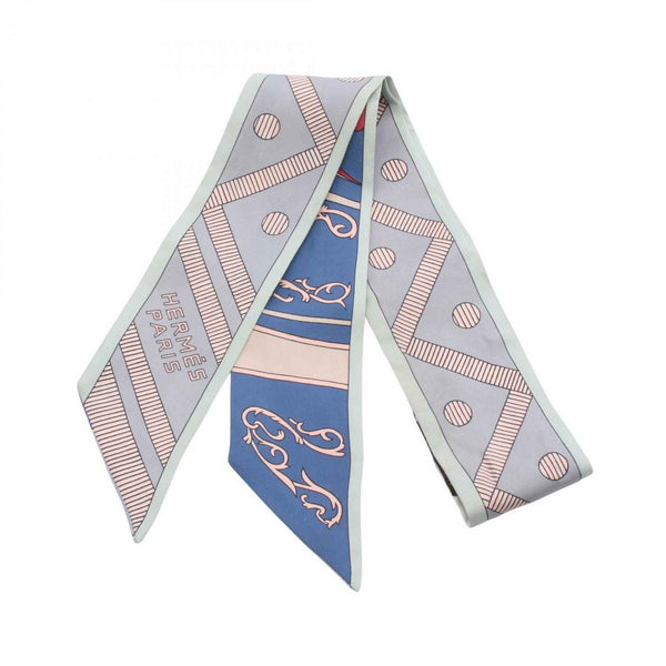 Hermes Hermès Twilly Balade En Berline Silk Scarf for Women in Multicolored Gray