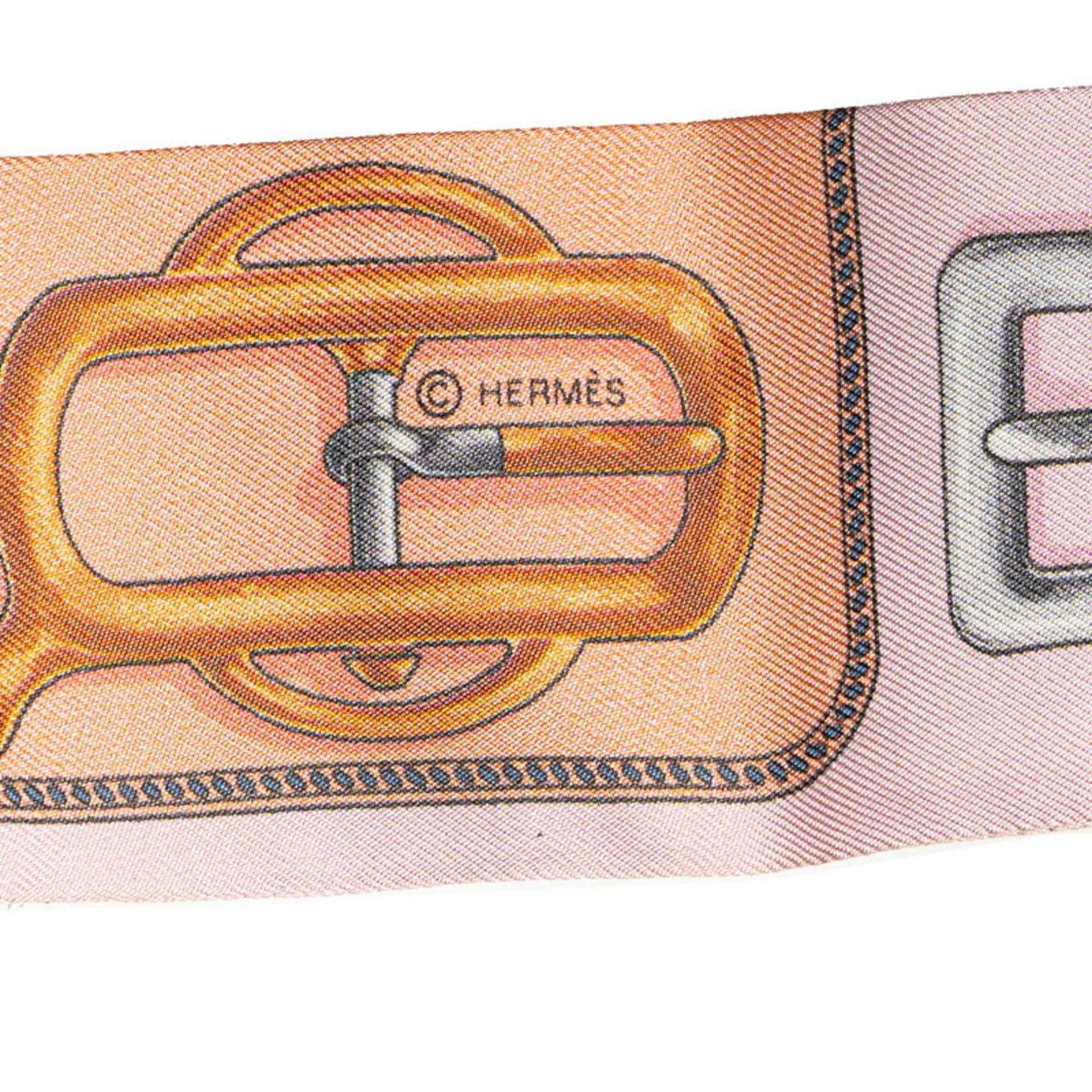 Hermes Hermès Twilly Bouclerie d Attelage buckle scarf, gray, brown, and multicolored silk, for women.