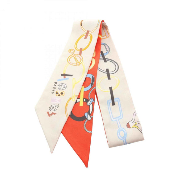 Hermes Hermès Twilly Do Re Boucles Silk Scarf for Women, Beige, Red, Multicolor