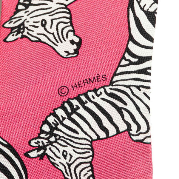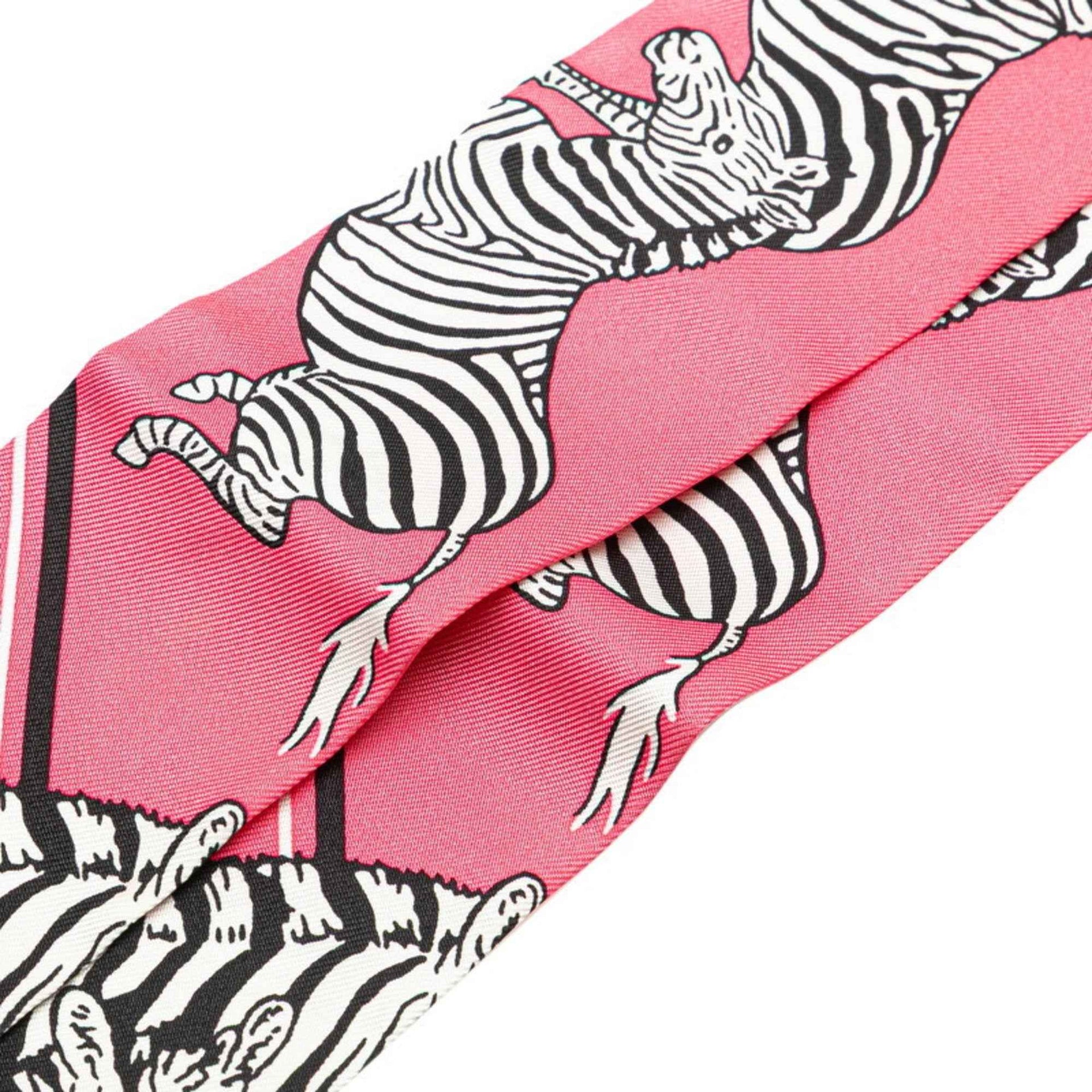 Hermes Hermès Twilly Les Zebres Bandana Zebra Scarf Muffler in Pink, White, and Multicolor Silk for Women