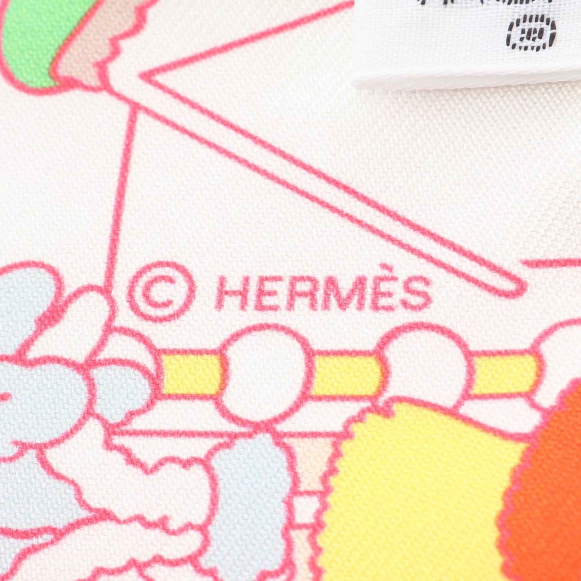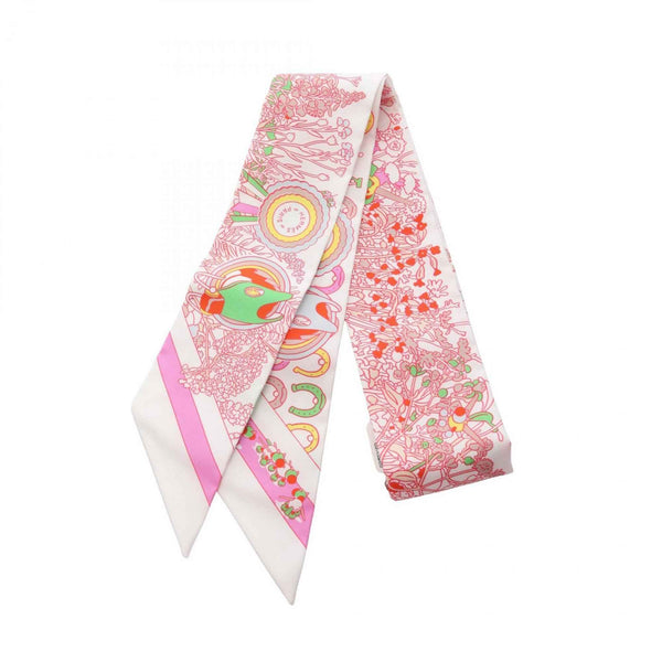 Hermes Hermès Twilly Pony Pit Stop Silk Scarf for Women, White, Red, and Multicolor